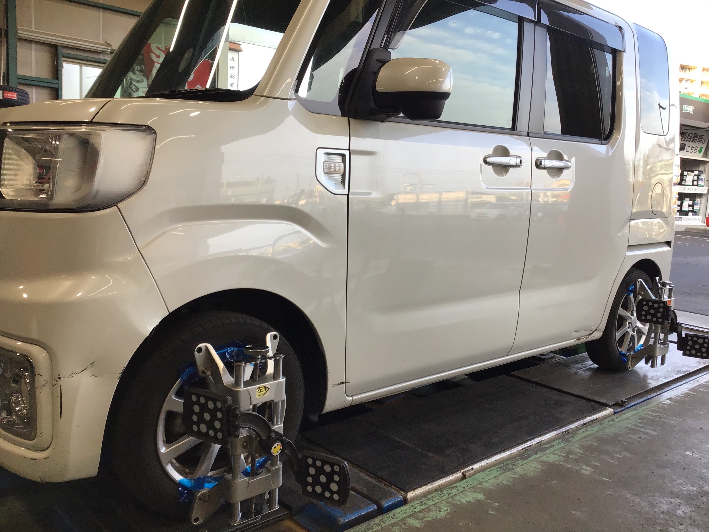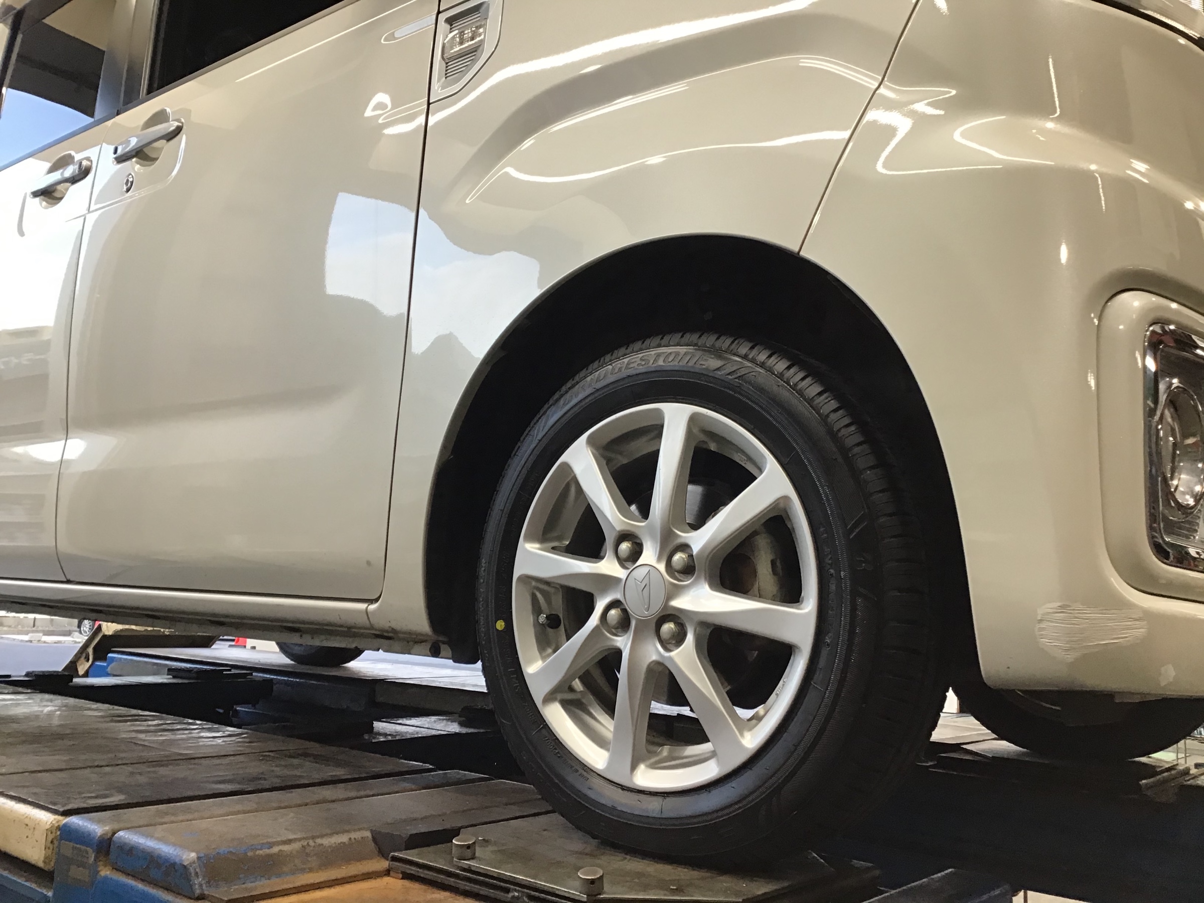 本日の作業はダイハツウェイクのタイヤ交換とアライメント作業です(°▽°)