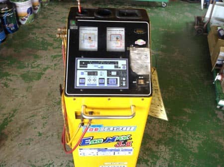 当店の機械では車内のエアコンガスを回収し、真空引きしてから入っていたガスは戻して