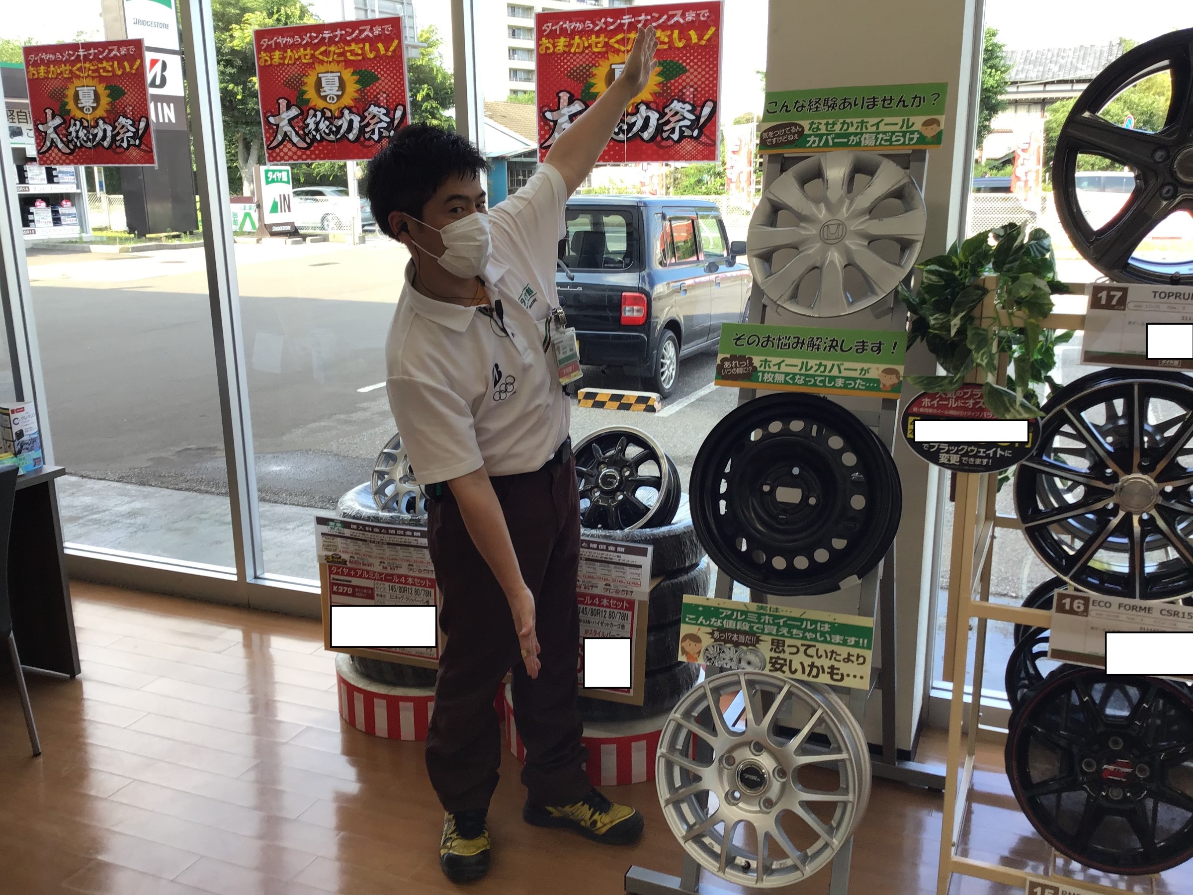 今日のヨッシーは、アルミホイールの展示を変更しています。
