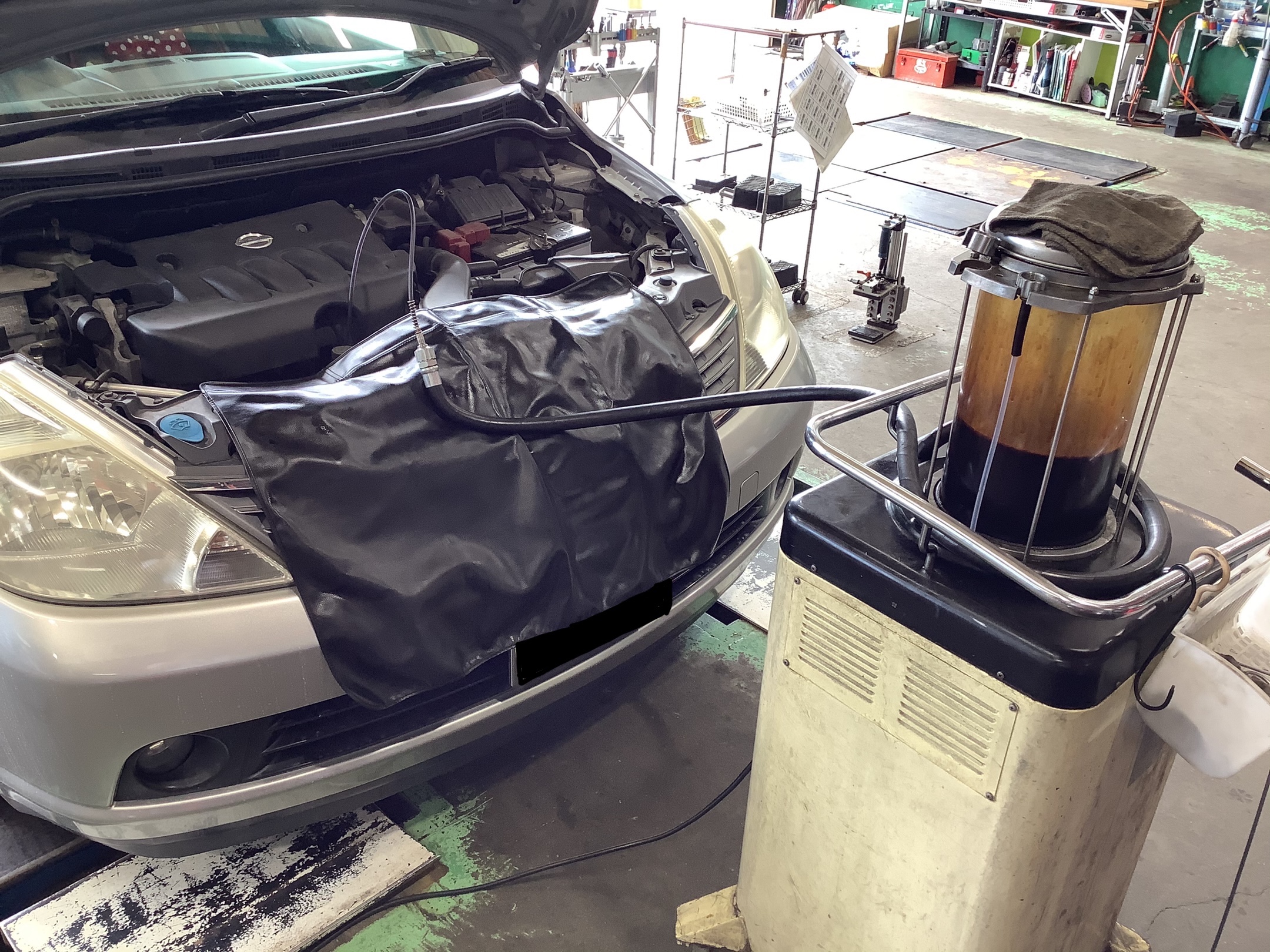 先日、ご来店頂いた「ティーダラティオ」オイル交換中です!