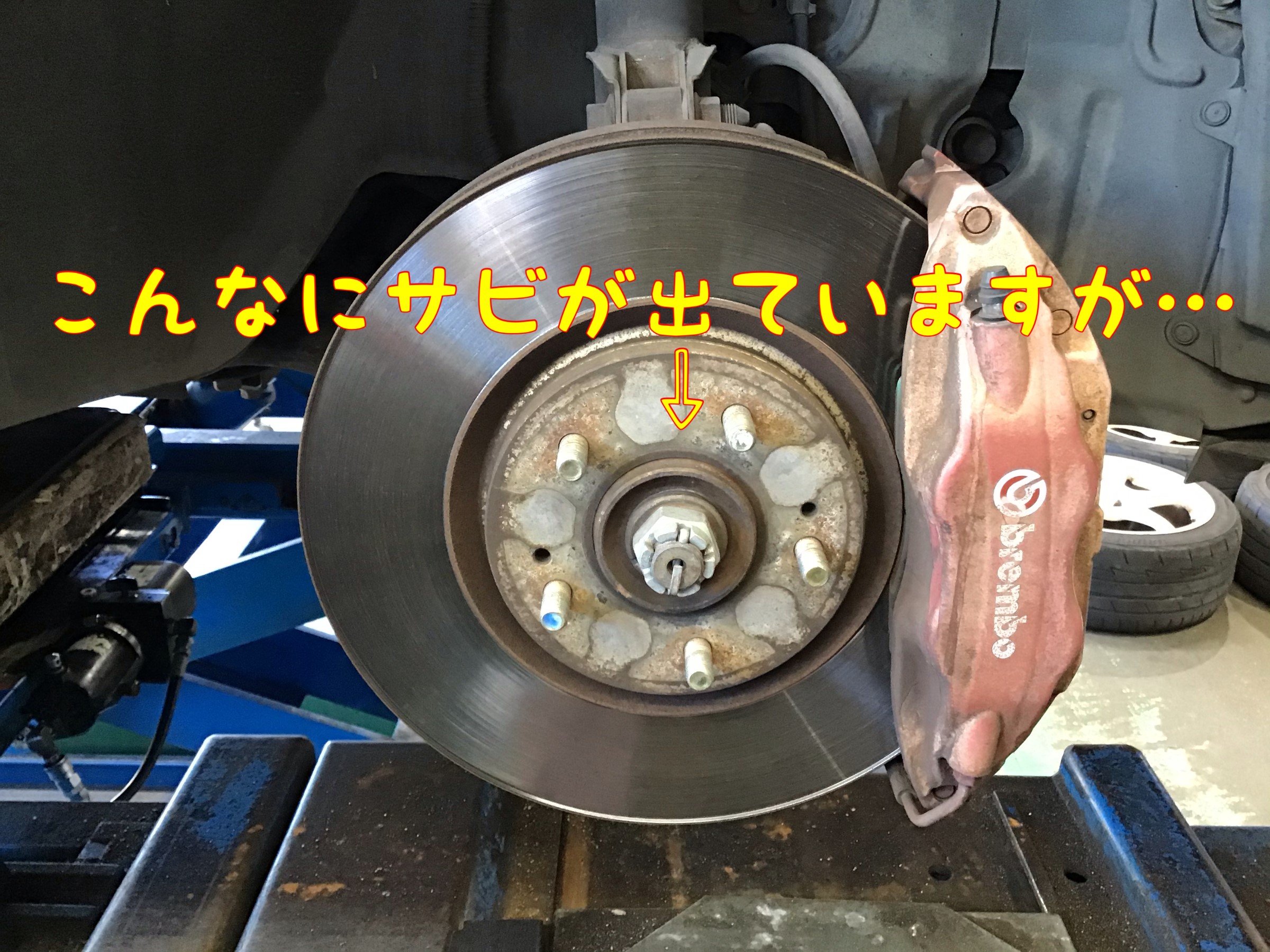 | ホイールが装着される車体のハブ! サビのせいでホイールが固着してしまっていて、取り外すのに一苦労でした( ノД`) なので、サビ除去&防錆コーティングを行います! ↑ブラシでしっかりとサビを磨き落として・・・ ↑防錆コーティング&耐熱グリスでしっかり保護!ヽ(`・ω・´)ノ ハブがサビでガタガタになるとホイールの中心位置がしっかり出なくなってハンドルのブレの原因になるので、手遅れになる前にしっかりと処置させていただきました! |