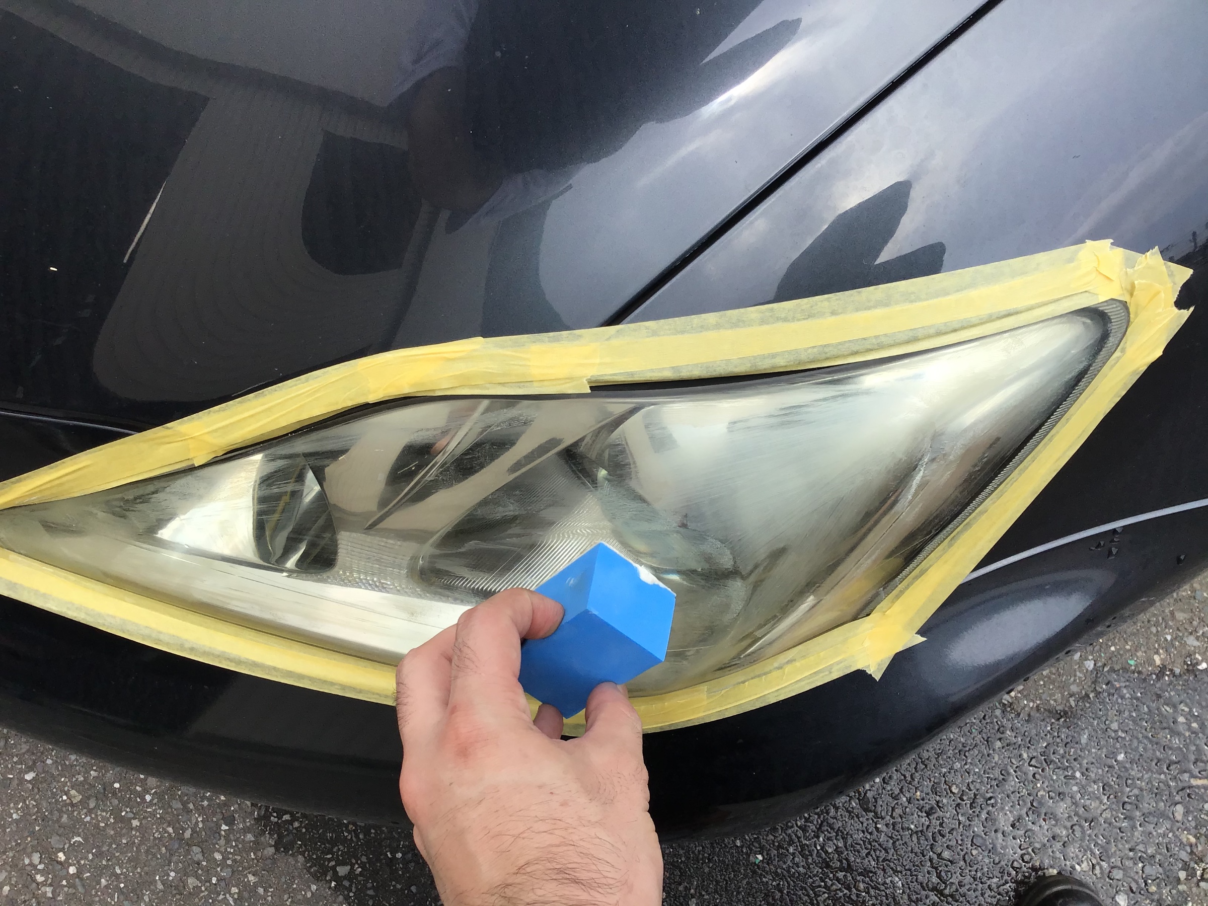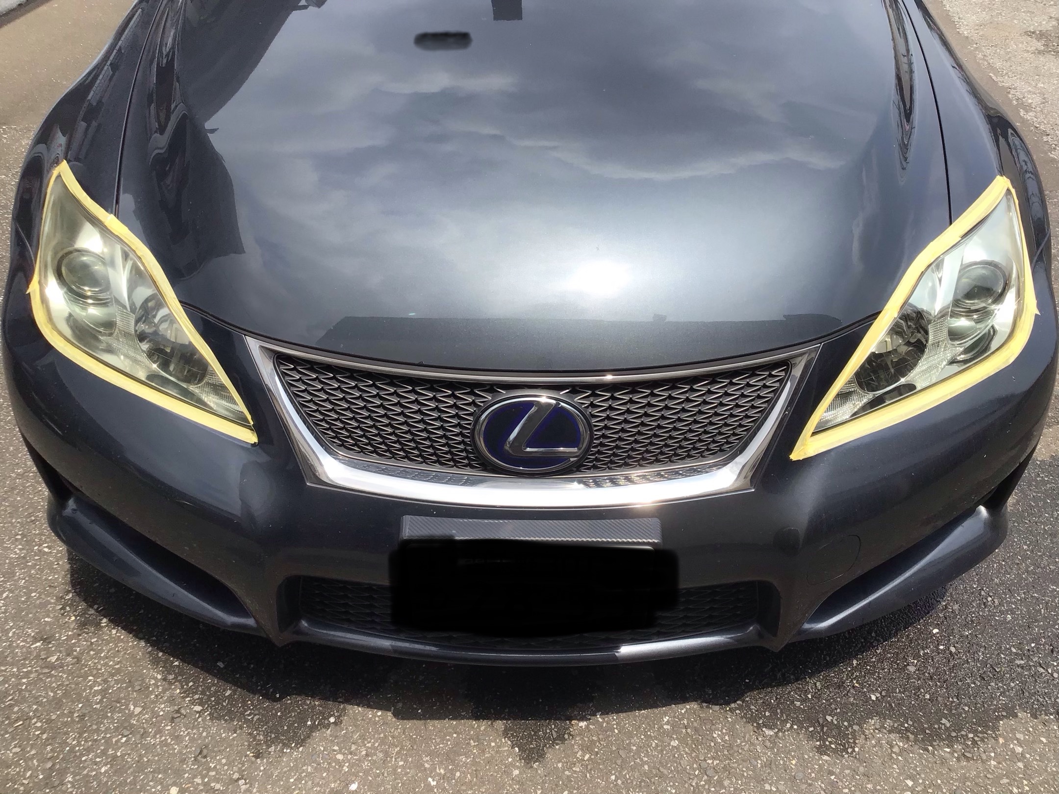 本日、セダンで大人気のIS-Fのヘッドライトコーティングを行いました。