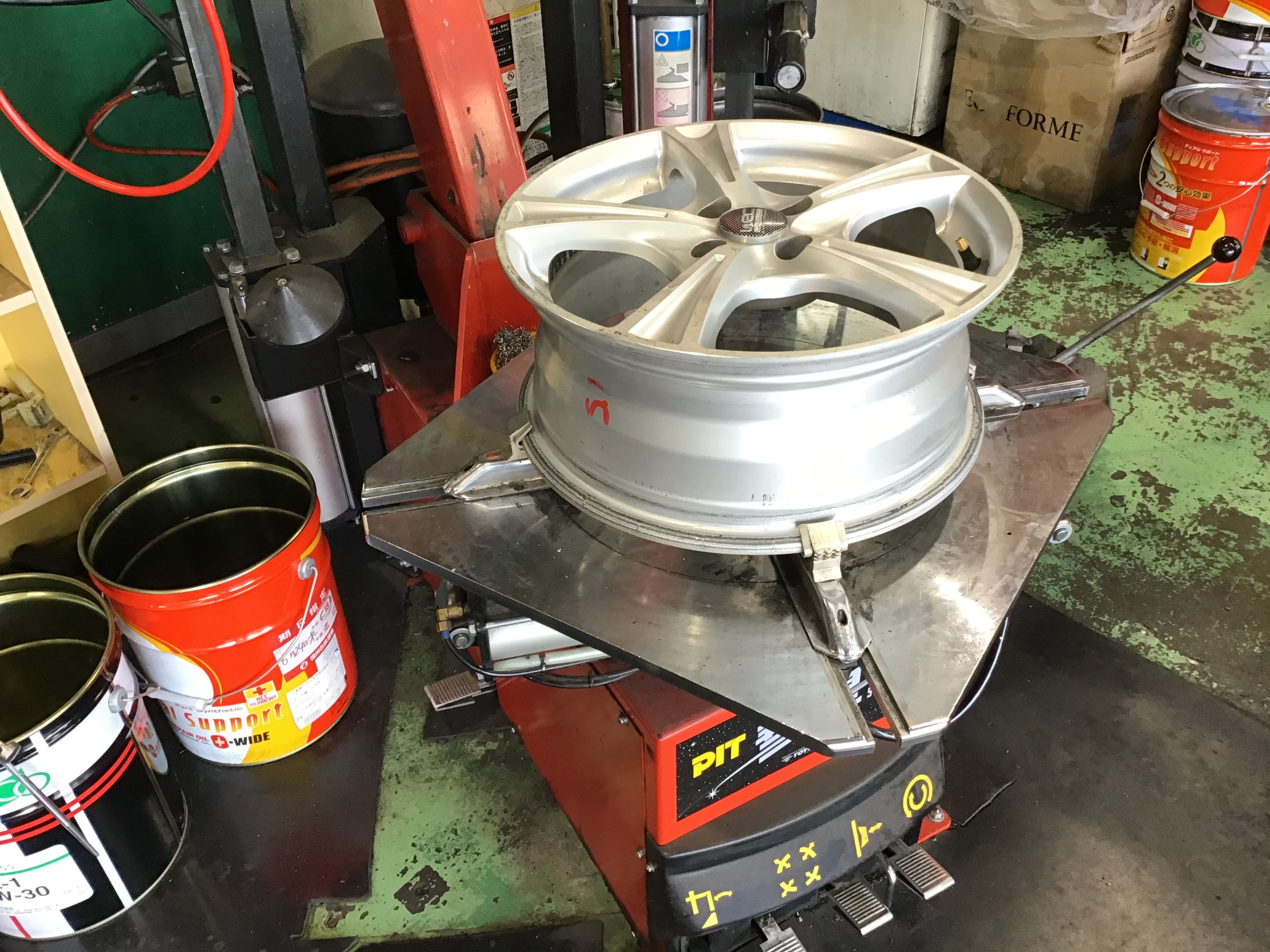 | 旧タイヤとホイールの接触面の汚れを清掃! ココを綺麗にしないとタイヤほホイールがしっかり密着せずに空気漏れの原因になることも・・・( ノД`) 当店では必ずしっかり磨いてお掃除してからNEWタイヤを組み込んでいますのでご安心くださいヽ(゚∀゚)メ(゚∀゚)ノ |