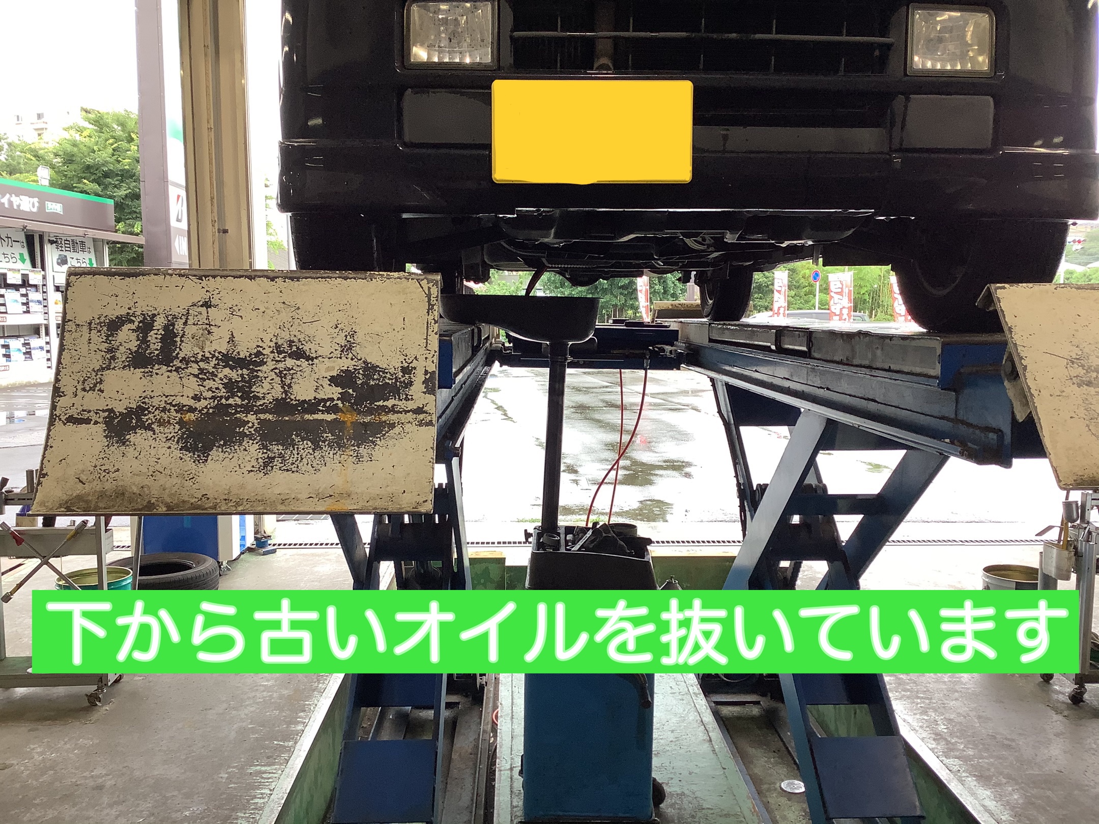 新しいオイルを入れる為に下から古いオイルを抜いています。