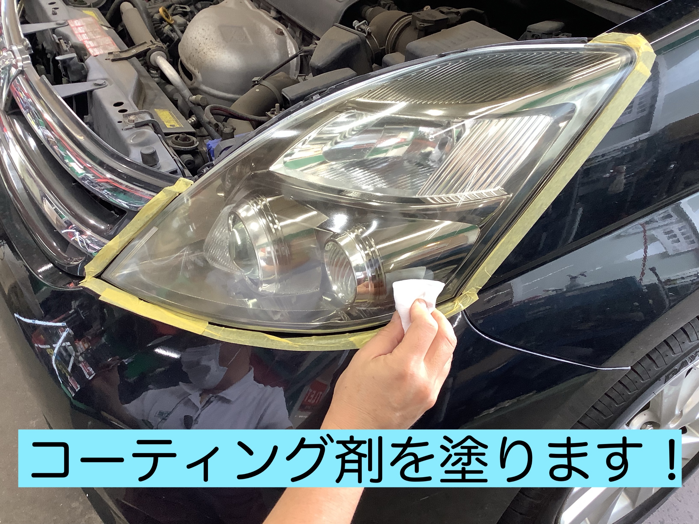 ヘッドライトコーティングは硬化に8時間程かかる為、