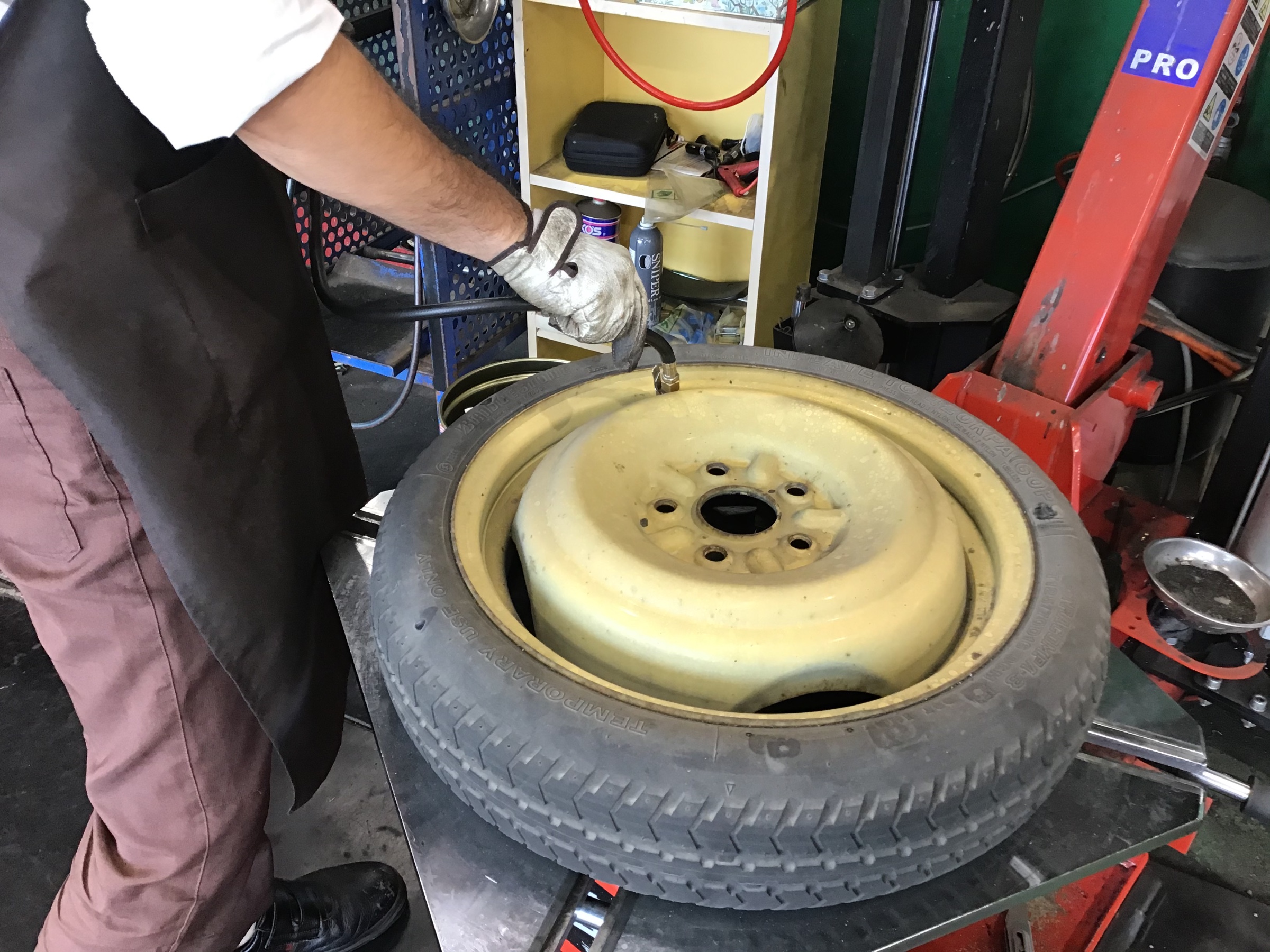 車自体に付いているタイヤの空気圧は点検してもスペアタイヤは見てないよなぁ…ってお客様がほとんどだと思います。そうすると、いざ緊急時にスペアタイヤを使おうとすると空気が抜けてしまっていてベコベコに……これじゃあスペアタイヤの意味がありませんよね(;´д`)