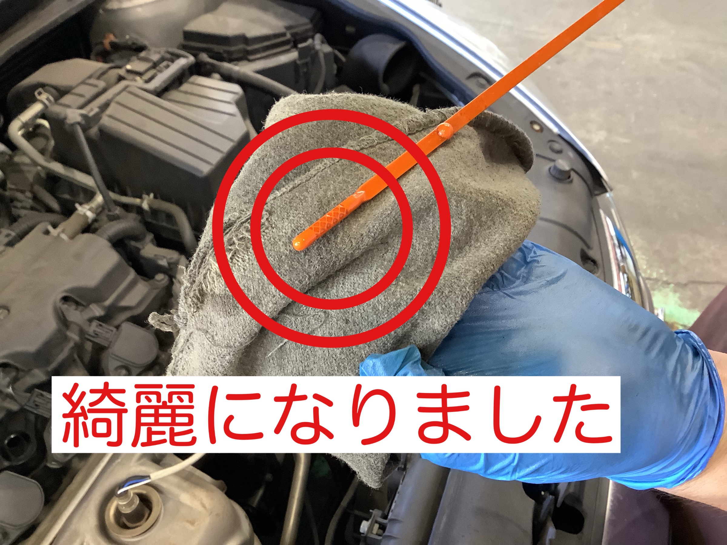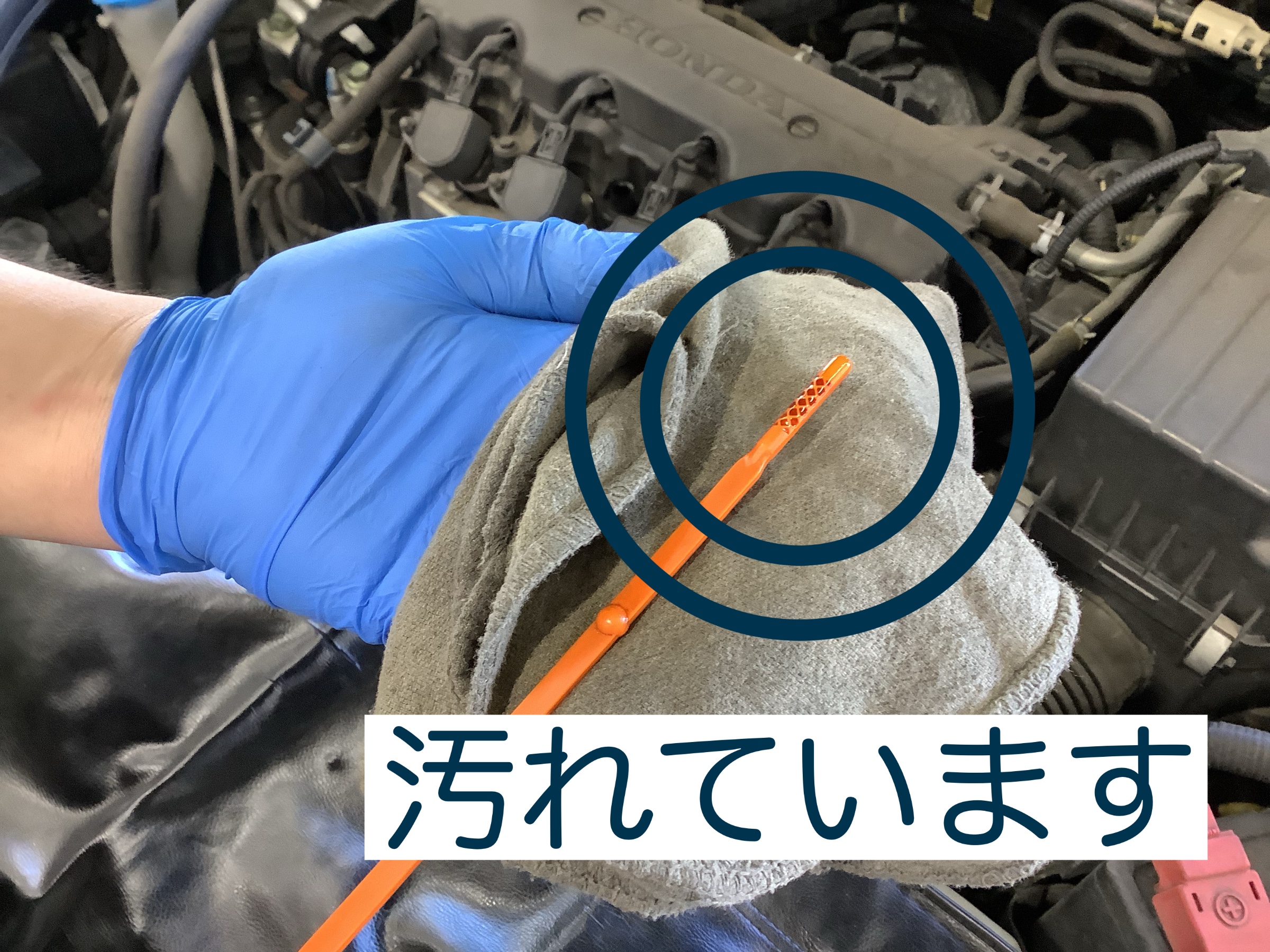 オイル交換前に確認をすると汚れているのがわかります。