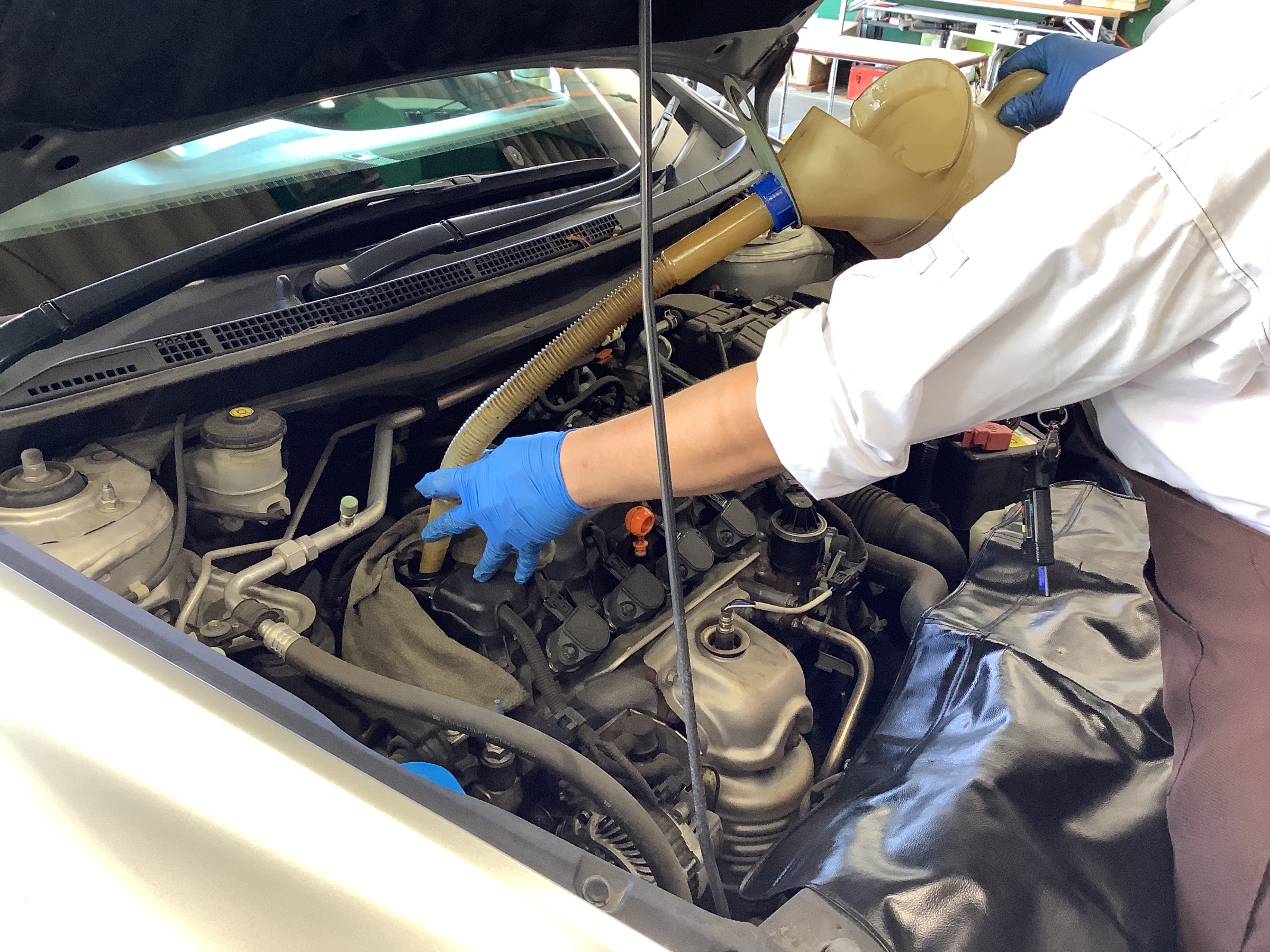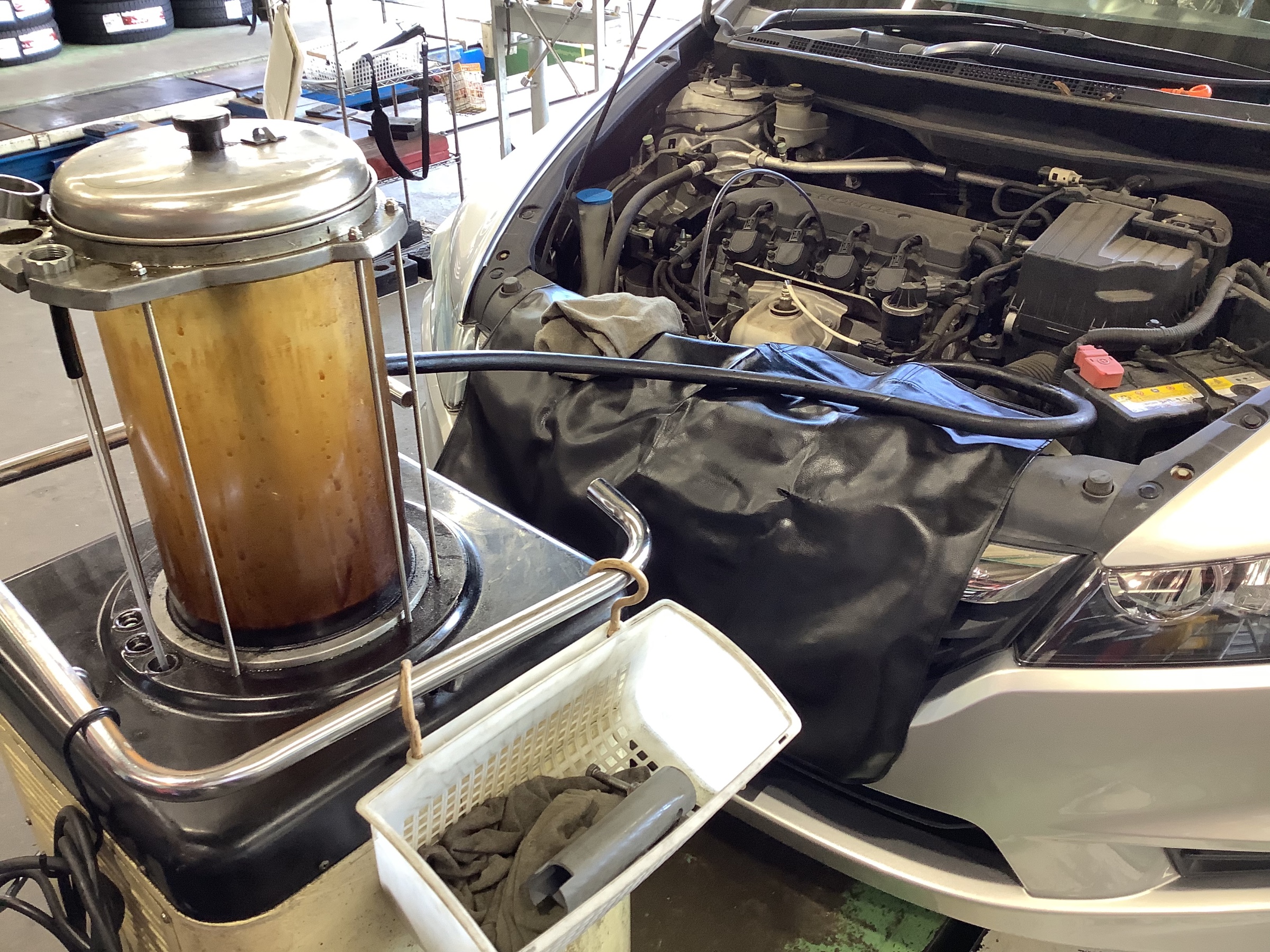 エンジンオイル交換実施中