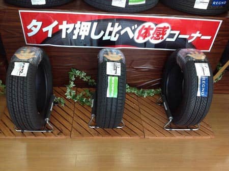 タイヤを押し比べに来てください。こんなに違うのっ。ビックリしますよ。