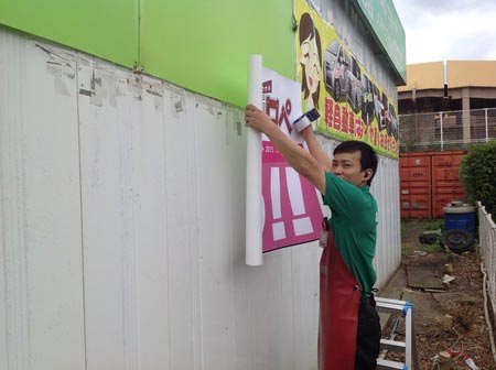 ガレージ裏の広告が剥がれてきていたので