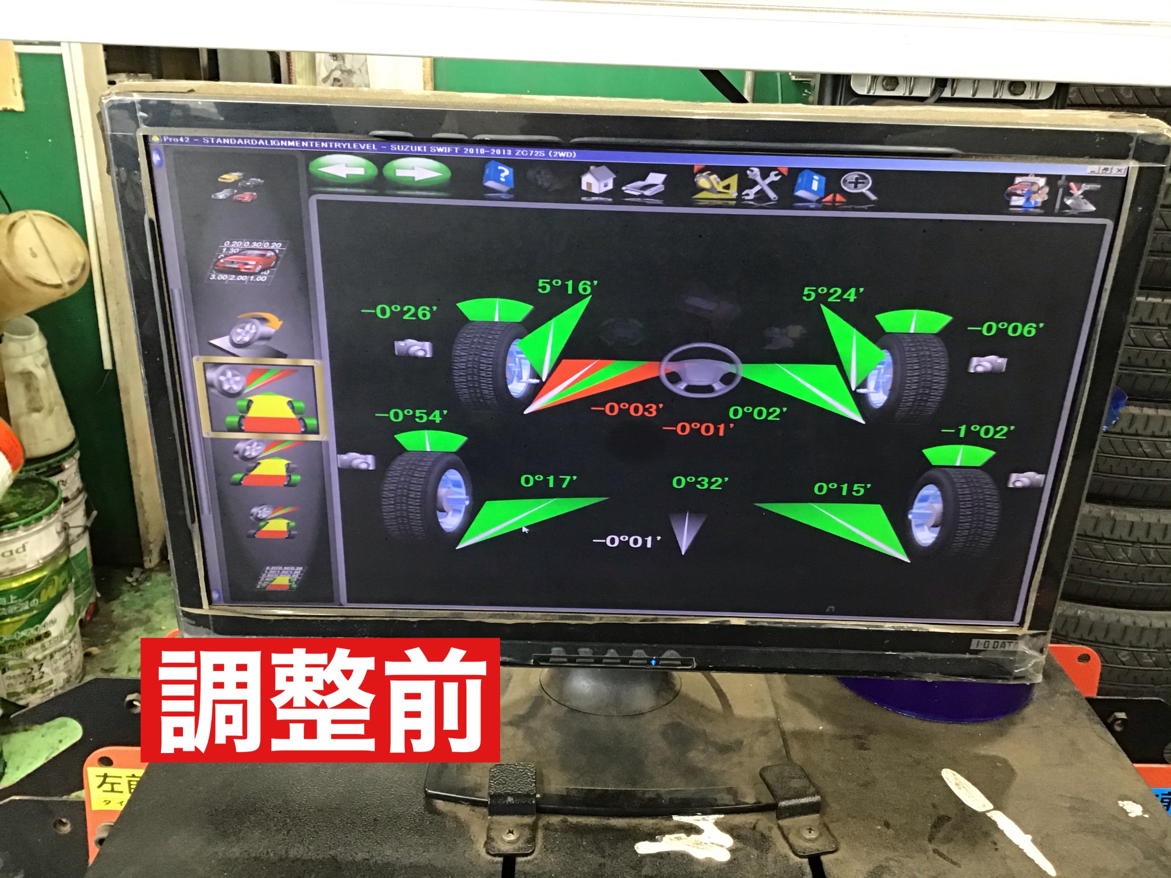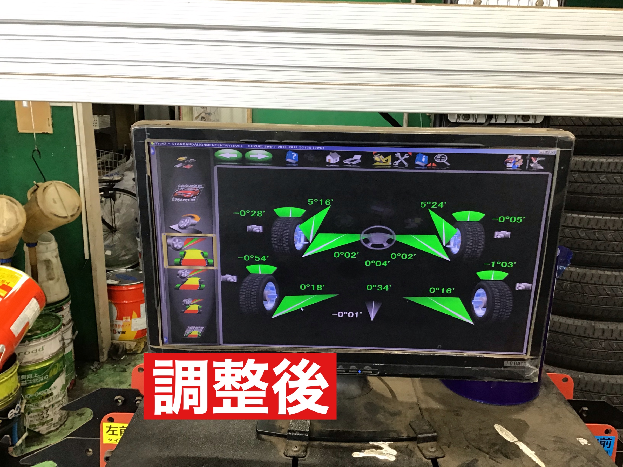 タイヤ館では、タイヤ以外にもタイヤの角度を調整する
