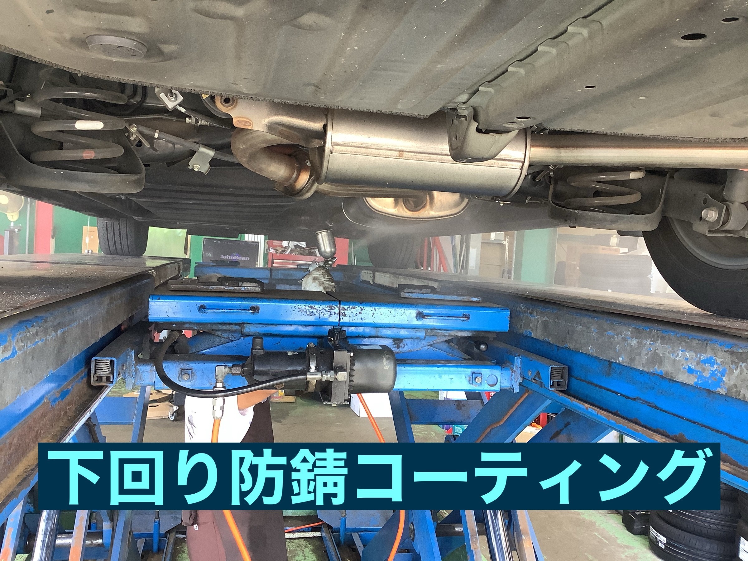 写真は下回り防錆コーティング中です。