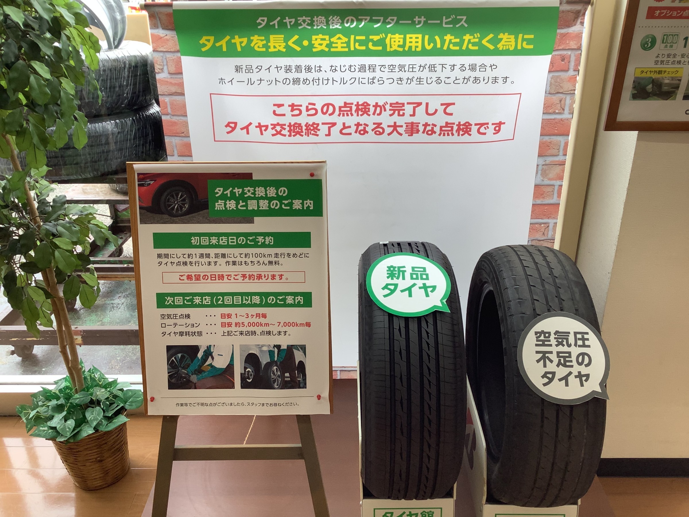 本日はタイヤ交換後のアフターサービス『100km点検』をご紹介します。