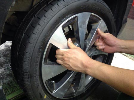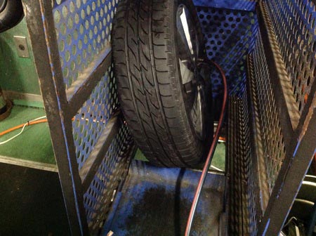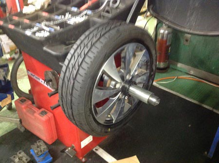 バランサーにてタイヤの組み付け後バランスをとります。