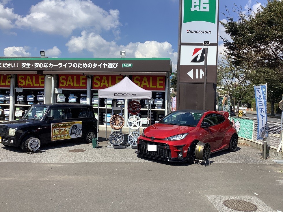 店頭にて「プロドライブ」「ポテンザ」「WORKエモーション」等の