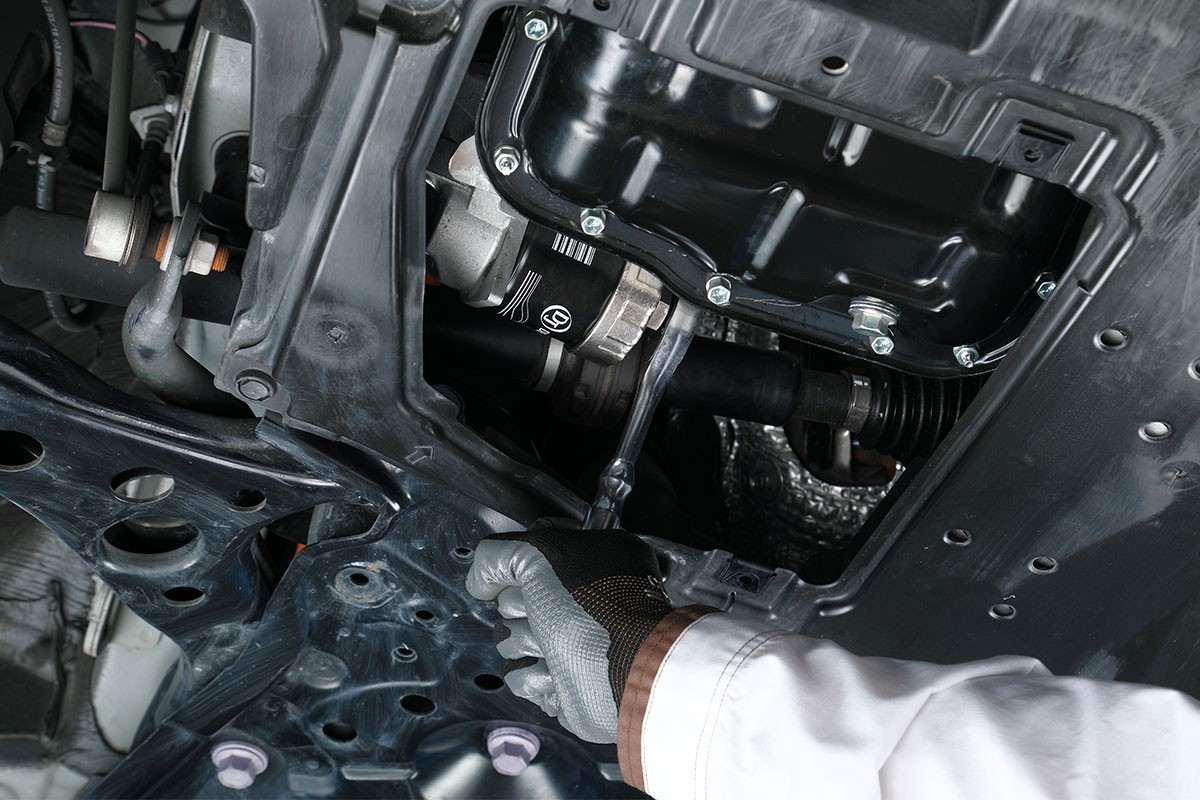 次にドレンボルトを外し、オイルを抜きます。外したドレンボルトに、変形やキズがないかを必ずチェックします。一部車両を除き、ドレンパッキンは毎回交換します。