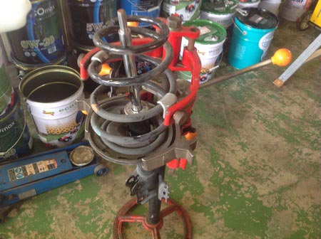 で快適、見た目の高さもカッコ良く決まりました。写真は専用のスプリングコンプレッサ