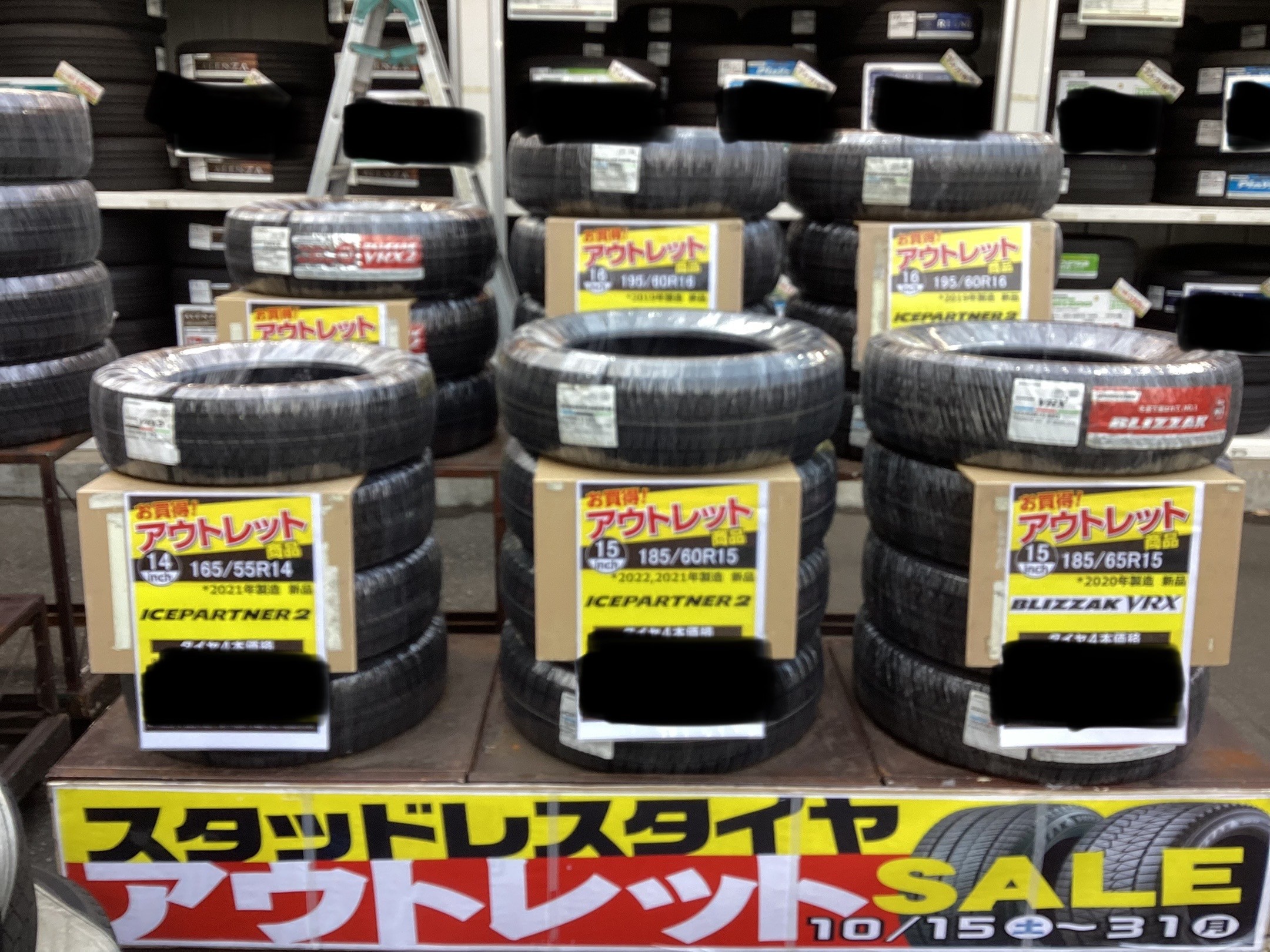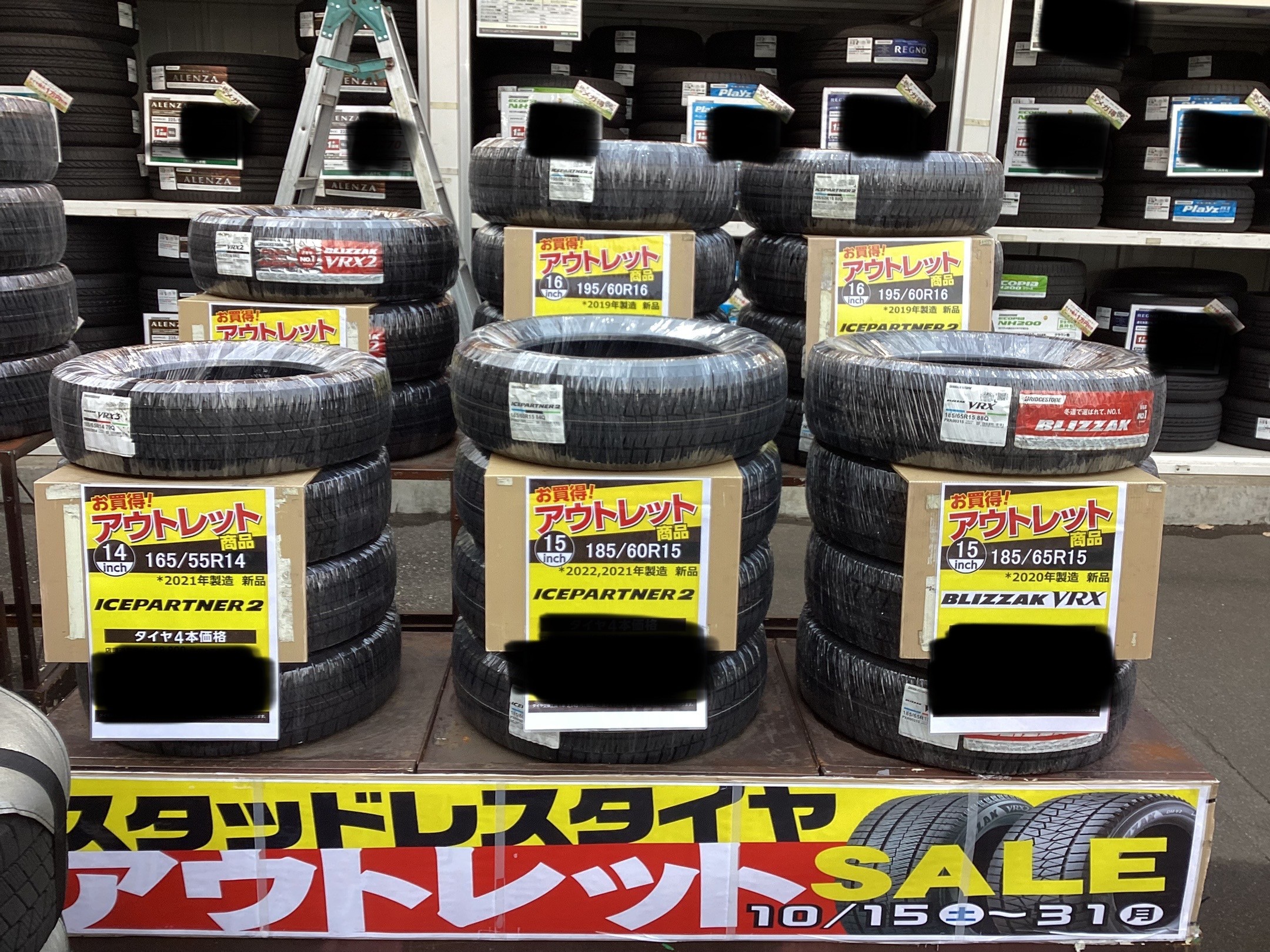 明日10月15日(土)~10月31日(月)までの期間中、タイヤ館八千代では「スタッドレスタイヤアウトレットセール」を開催いたします!!
