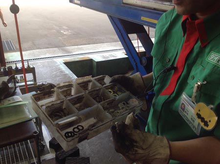 ①まずはオイル量を確認します。