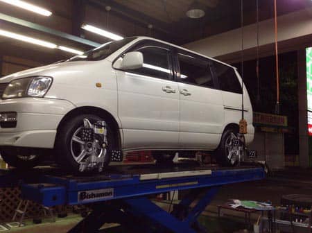 今日はライトエースノアのタイヤホイール交換&アライメントです。