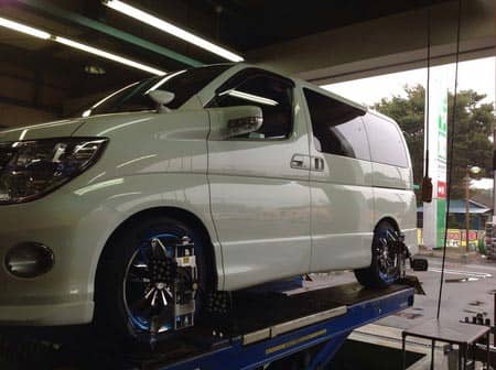 本日はエルグランドのアライメントです。エルグランドはタイヤの角度が後ろと前