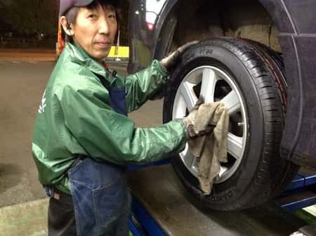 タイヤ館では、タイヤ交換の際はタイヤワックスを塗布し、ホイールの清掃を実施して
