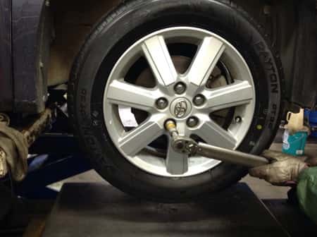 状態で一度、専用のトルクレンチにて締め付け確認。2回目は車両を下ろした状態にて