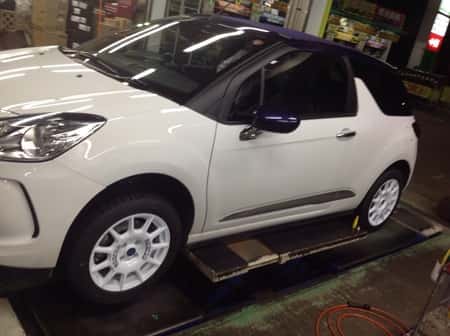本日はシトロエンDS3にスタッドレスホイール取り付けです。白いボディに白い