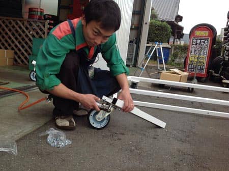 スタッドレスタイヤを乗せるタイヤラックを製作しています。近日大量にタイヤを