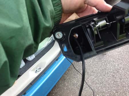 本日はタントエグゼにバックカメラ取り付けました。リアのゲート内張がリベット止め