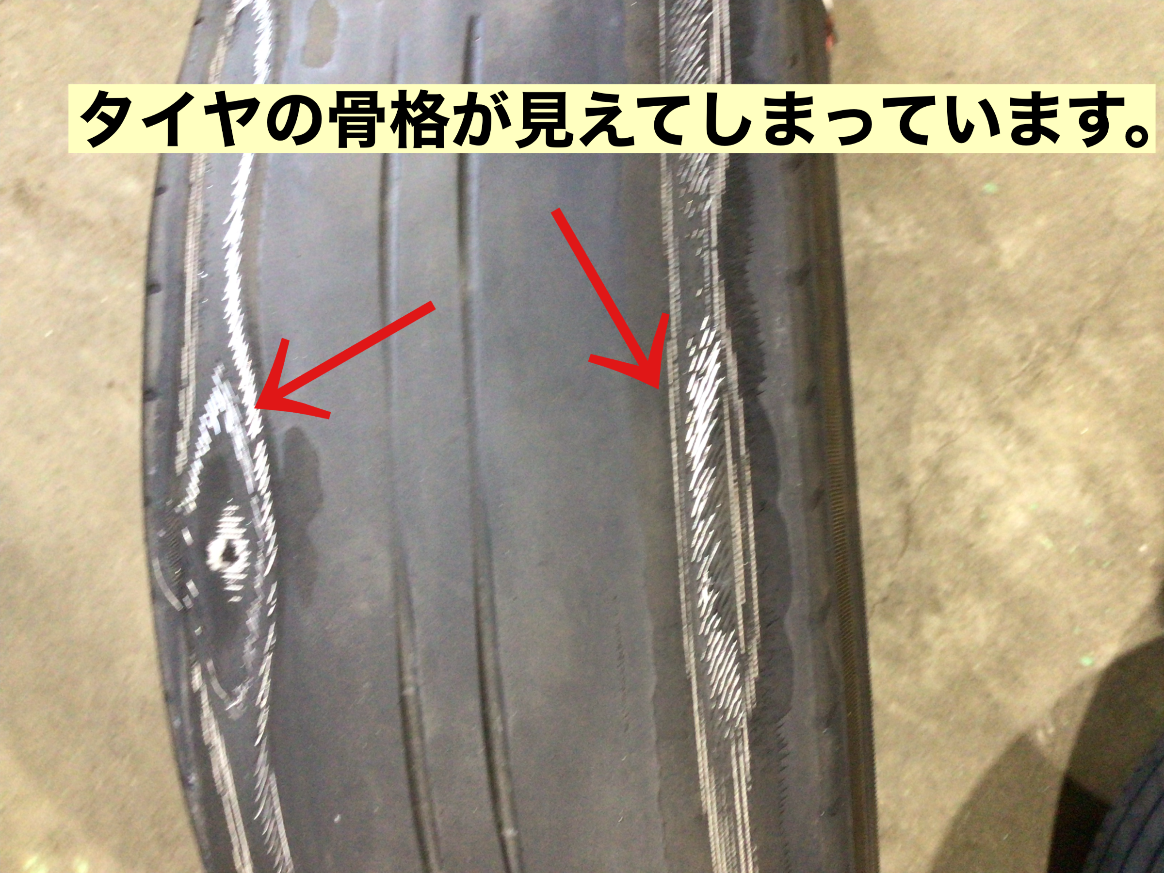 タイヤの溝を使いきってしまうと、タイヤのなかにあるワイヤーが見えてきてしまうことがあります(;'∀')