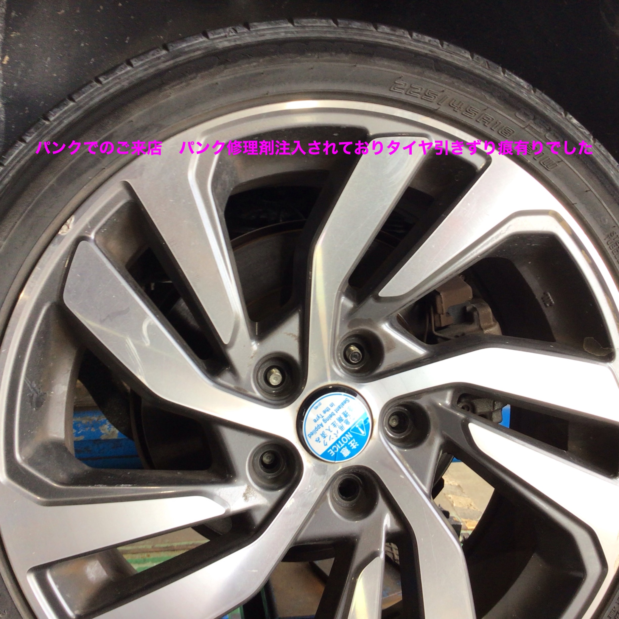 パンクしたまま走行すると内部損傷にて修理も出来なくなります。