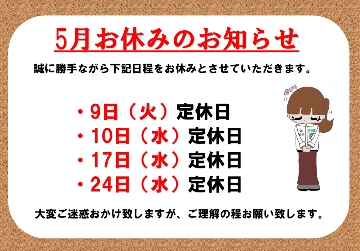 5月24日(水)は、定休日となっております。