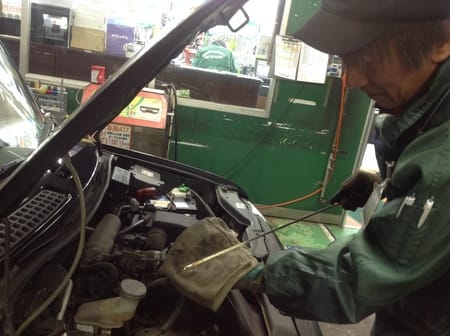 オイル・バッテリー・ワイパーなどの点検をしています。