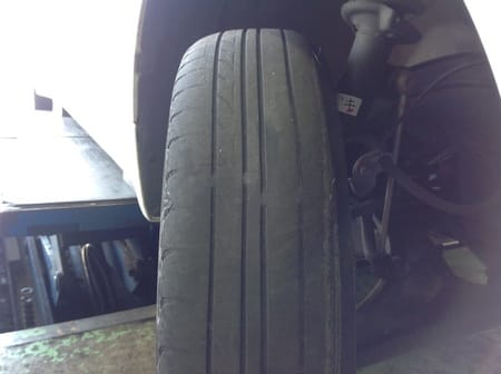 タイヤは偏磨耗していましたがアライメントでタイヤの角度を整えましたので