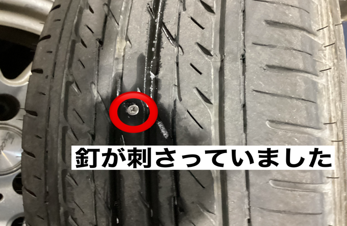 今回は、もともと、パンクしていた1本だけの交換予定でしたが、反対側のタイヤもパンクがあった為