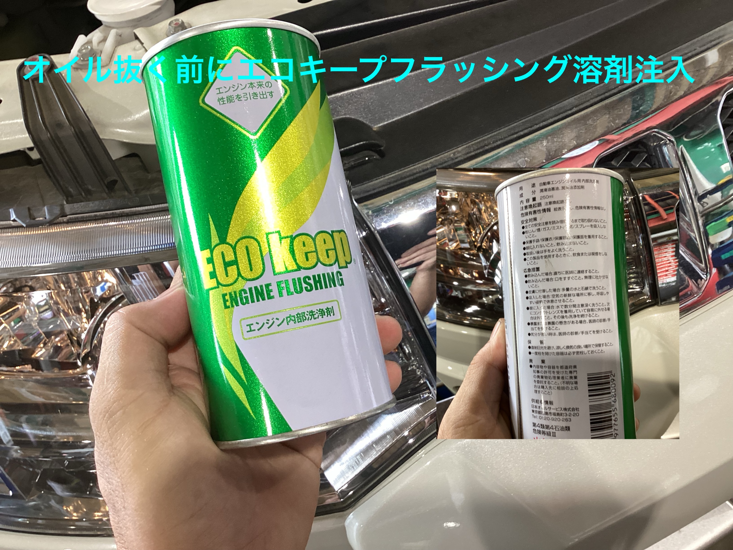 オイルを抜く前にフラッシング剤を入れ15分ほどアイドリング