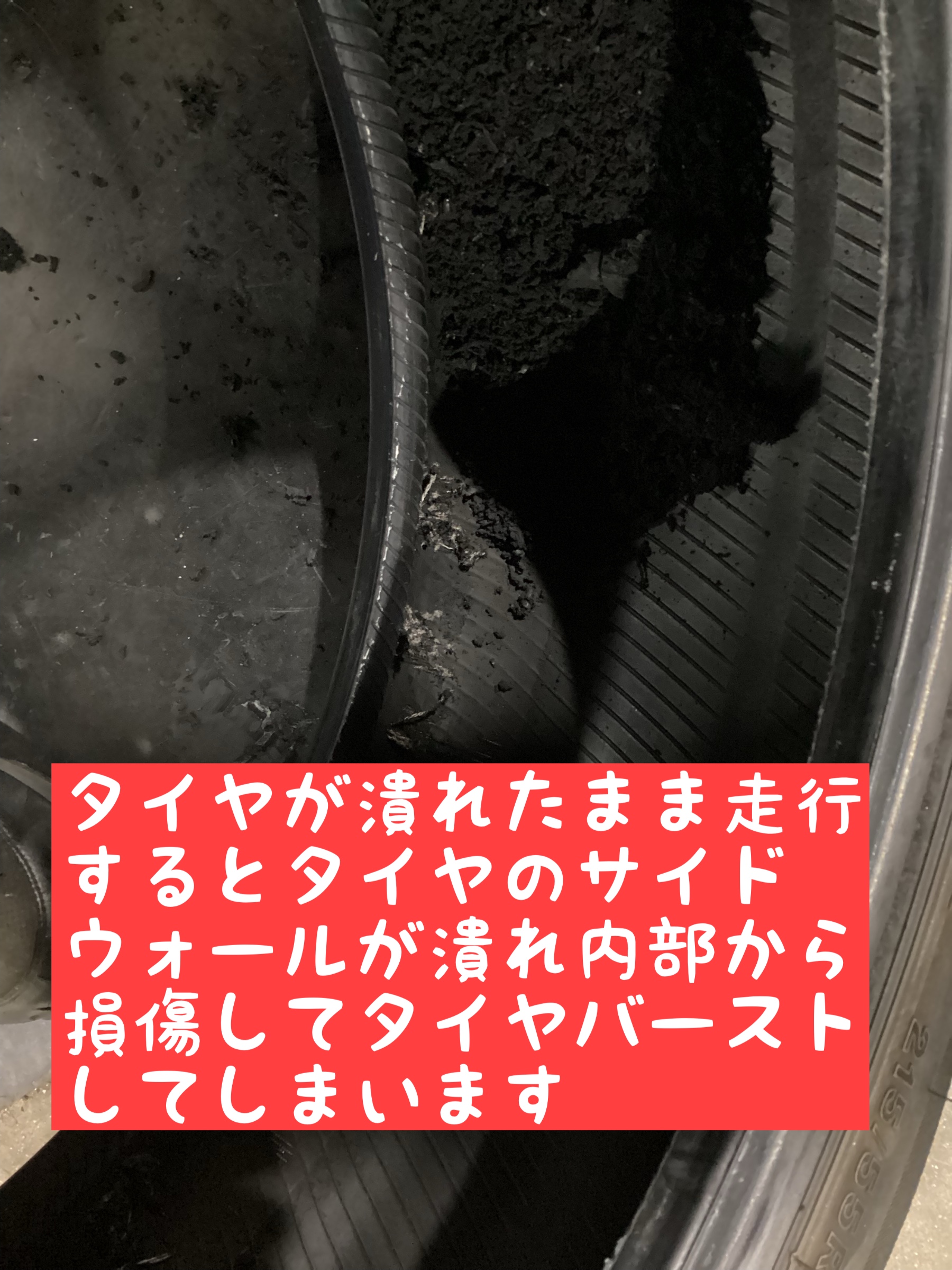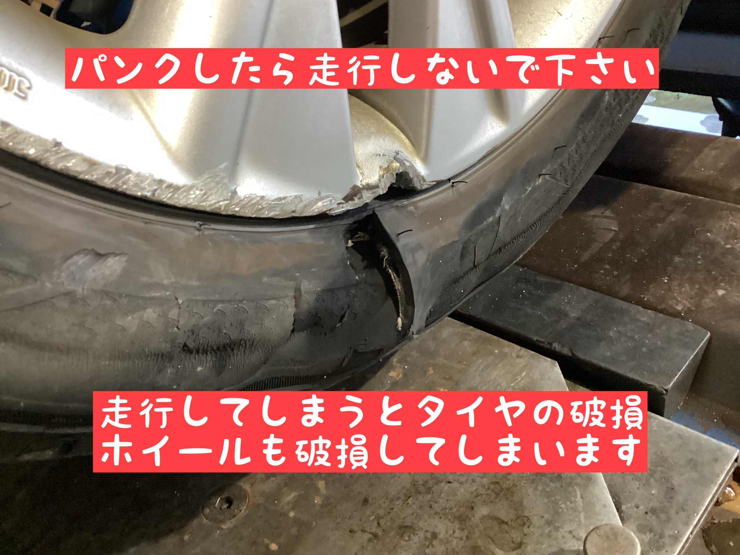 ちょっとしたパンクでもスペアタイヤに入れ替えかレッカーにての移動をおすすめします。
