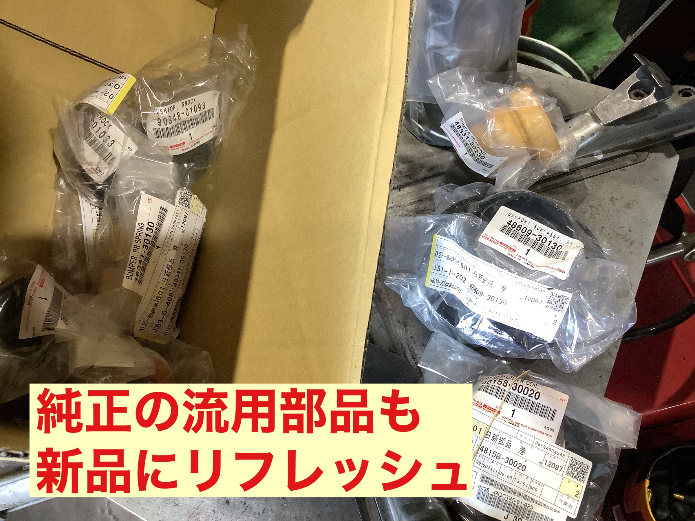 純正流用するゴム系の部品も劣化していると乗り心地等に影響しますので