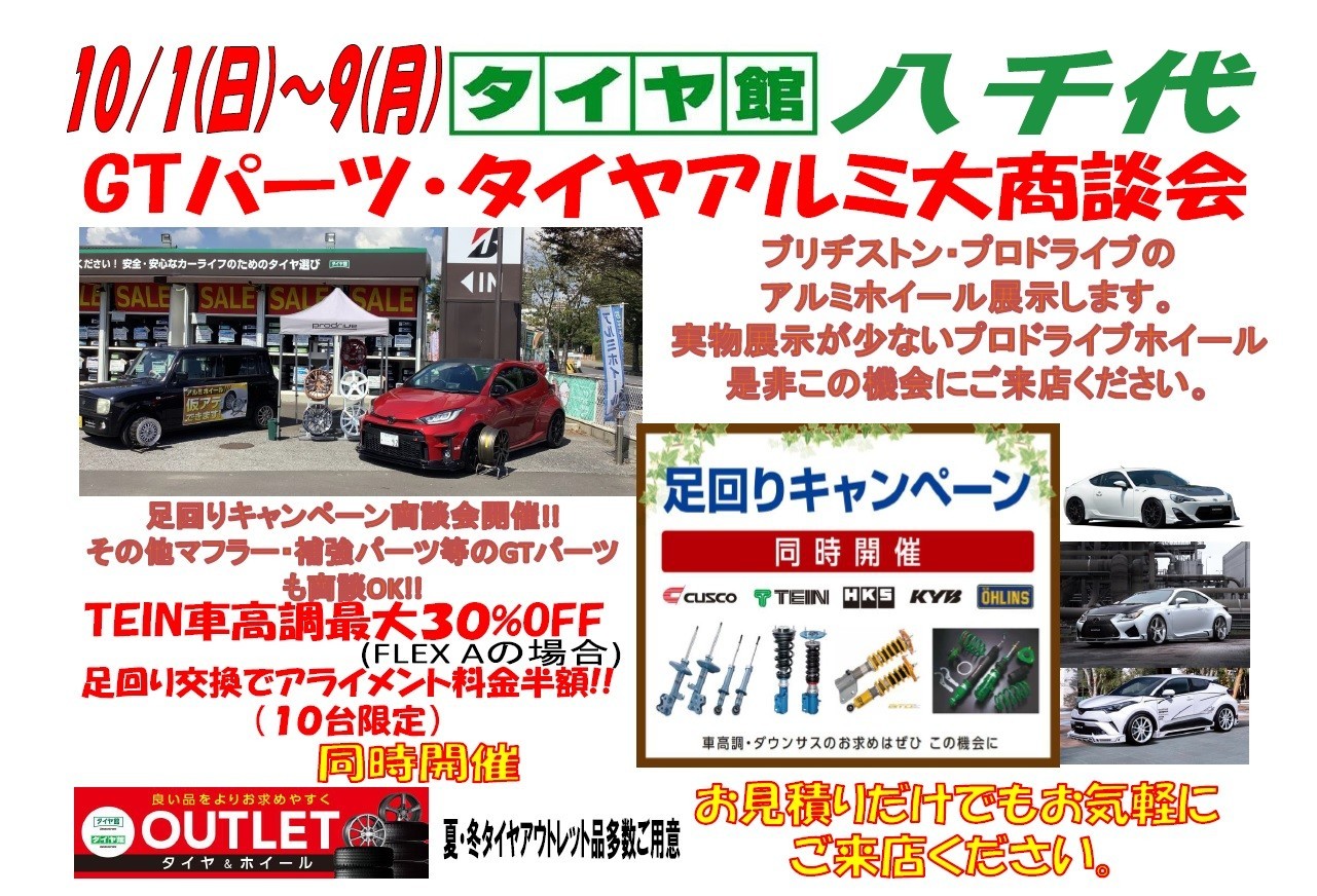 本日より、【愛車をオシャレに!足回り・アルミホイール大商談会開催】を開催致します(^^♪