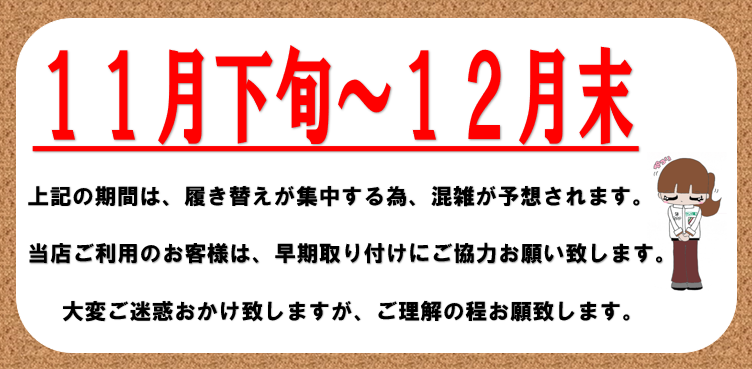11月下旬から12月は、特にピットが混雑致します。