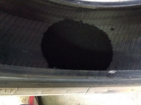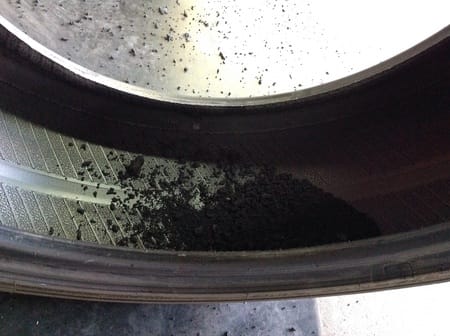 タイヤをバラすとこんなにゴムが削れてしまいます。
