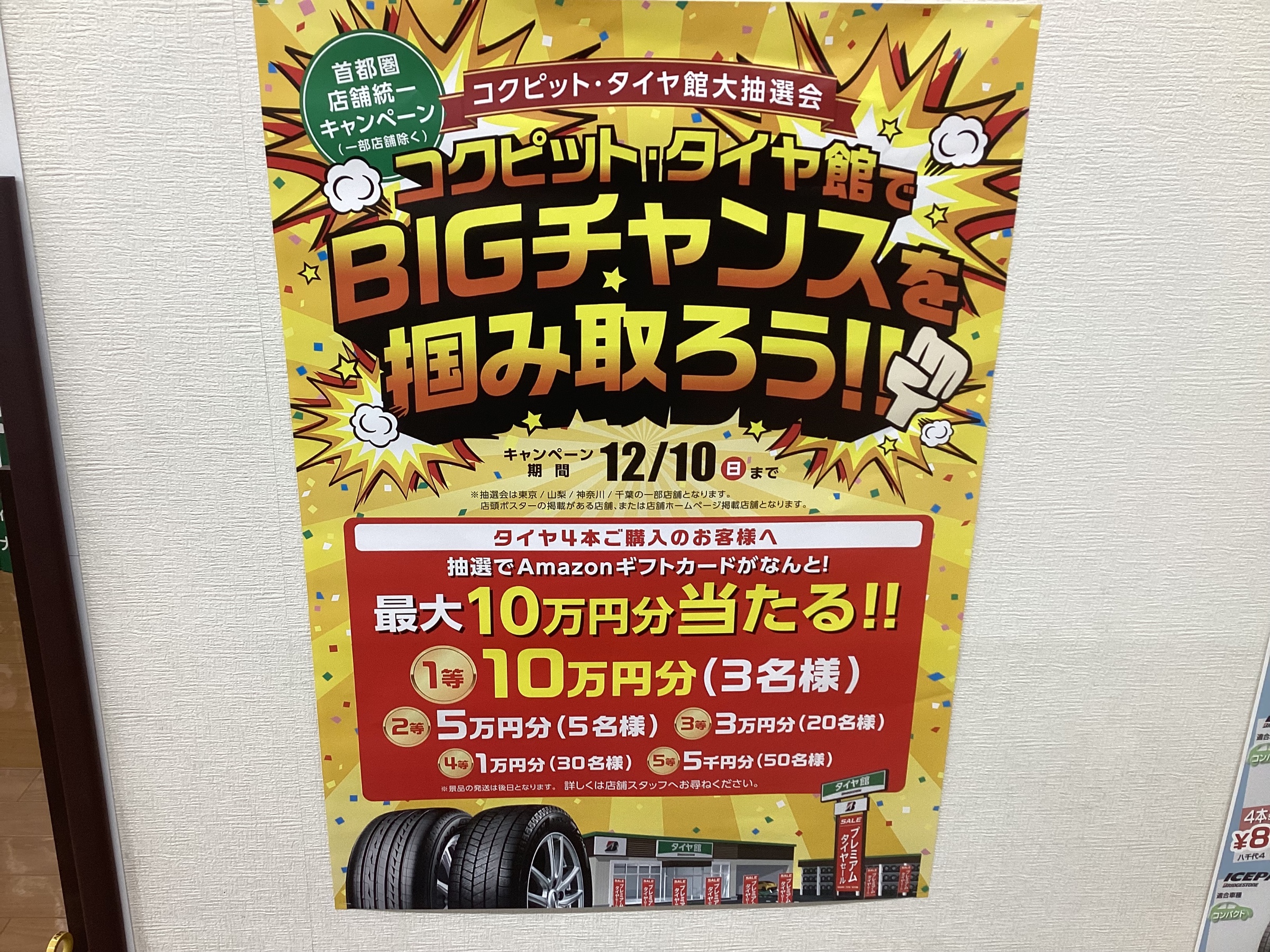 大抽選会実施中です、タイヤを購入希望なら今がチャンス1等最大10万円分。