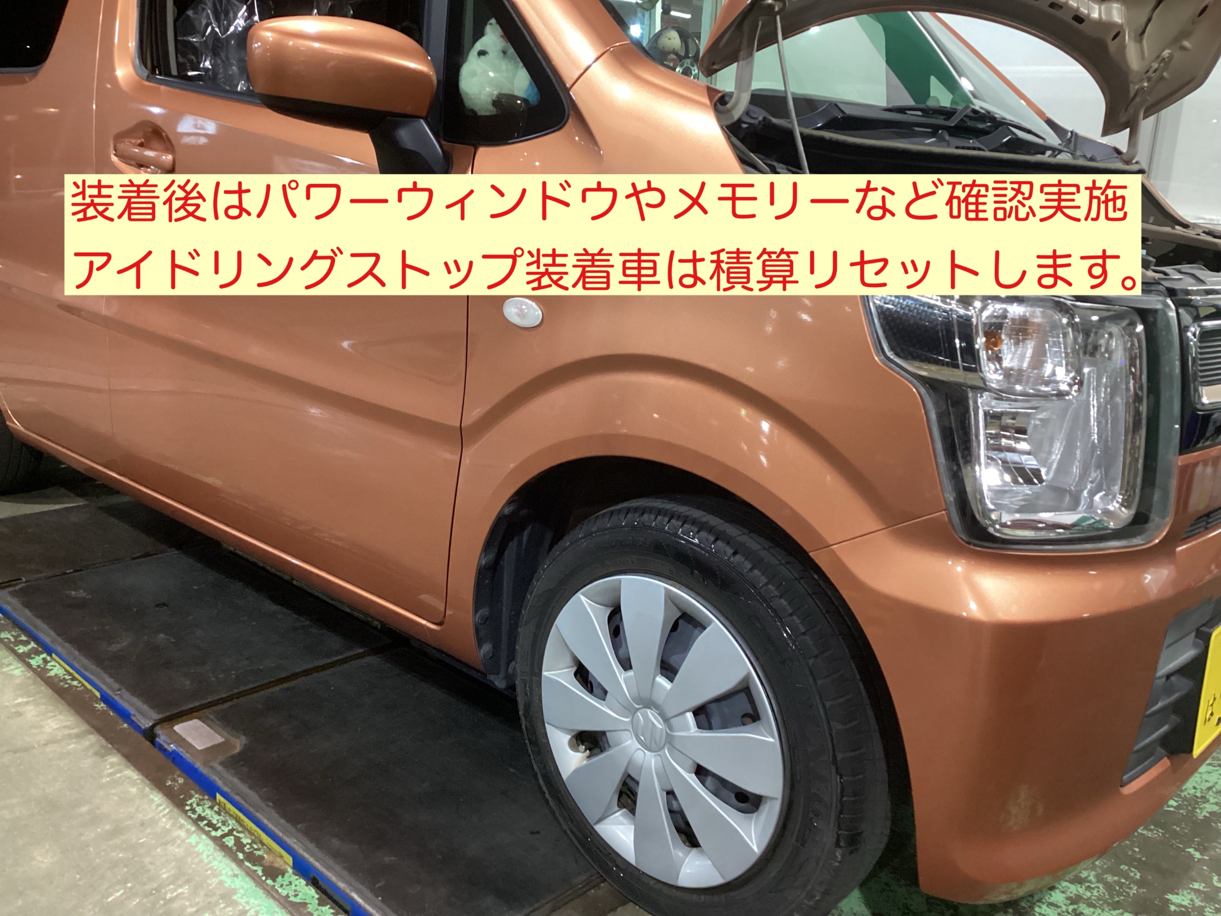 本日はワゴンRのバッテリー交換実施致しました、各サイズ在庫は豊富にご用意いたしておりますが