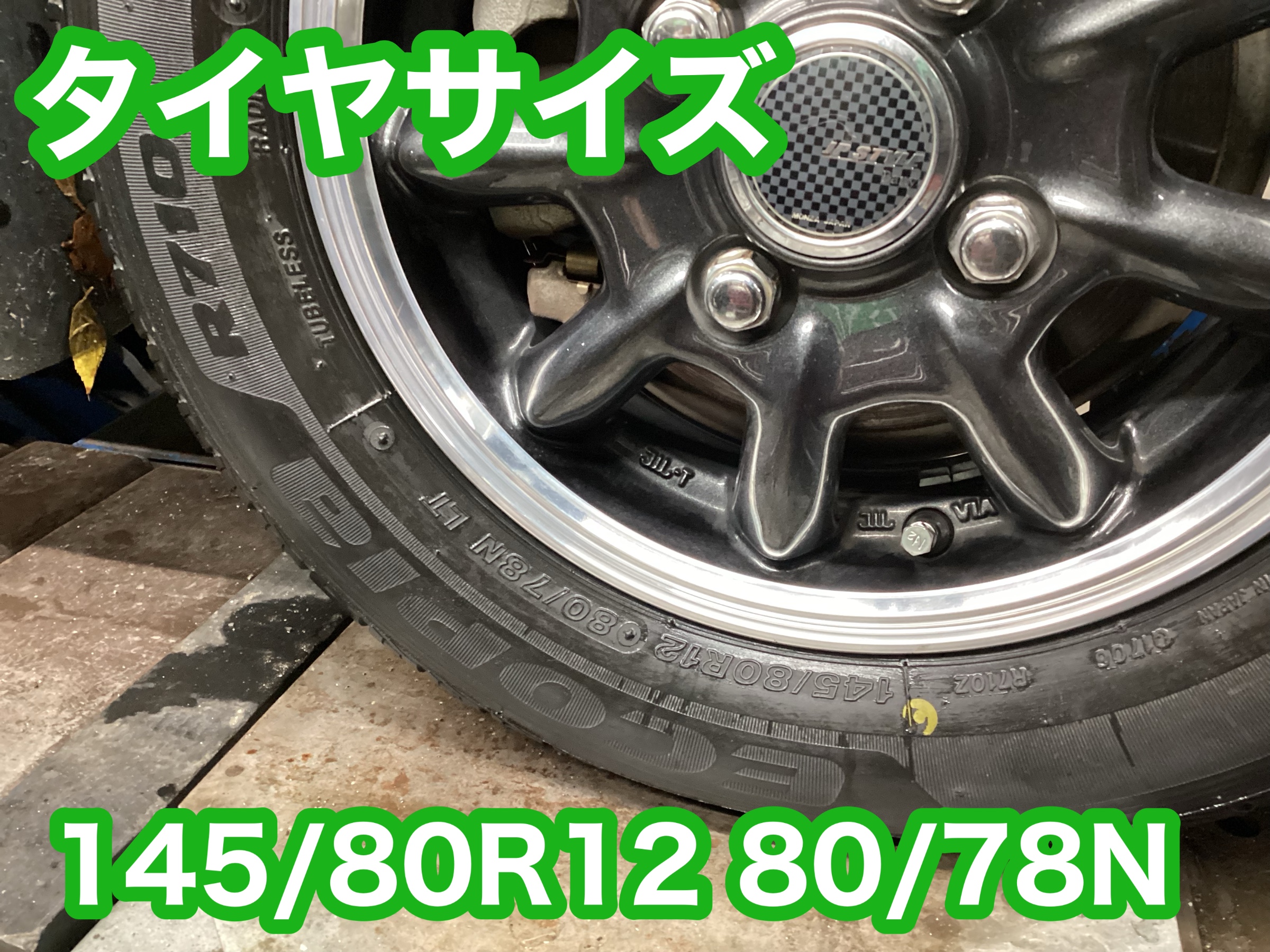 タイヤサイズは145/80R12 80/78Nです。
