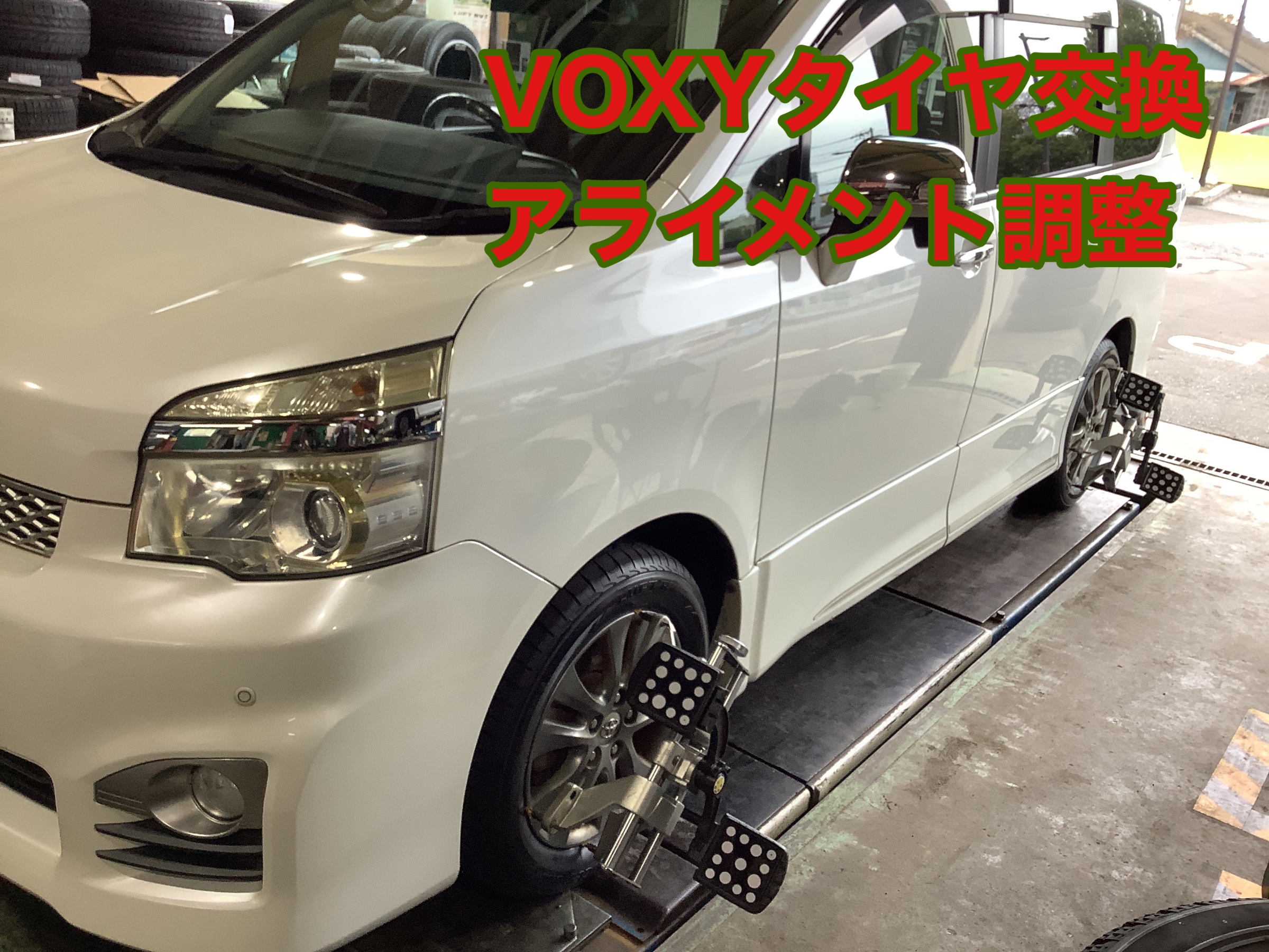 トヨタVOXYのタイヤアライメント調整を実施しました。