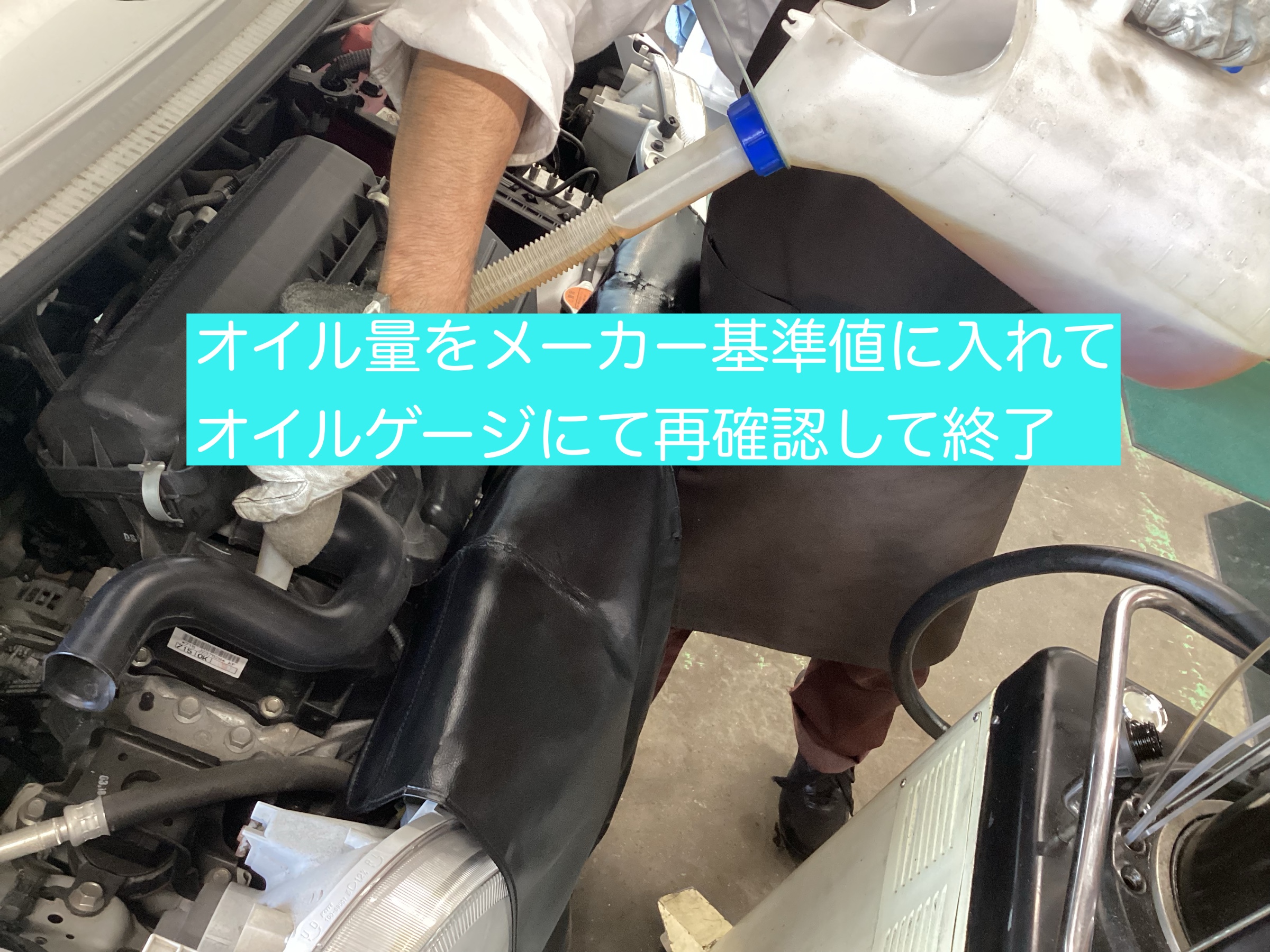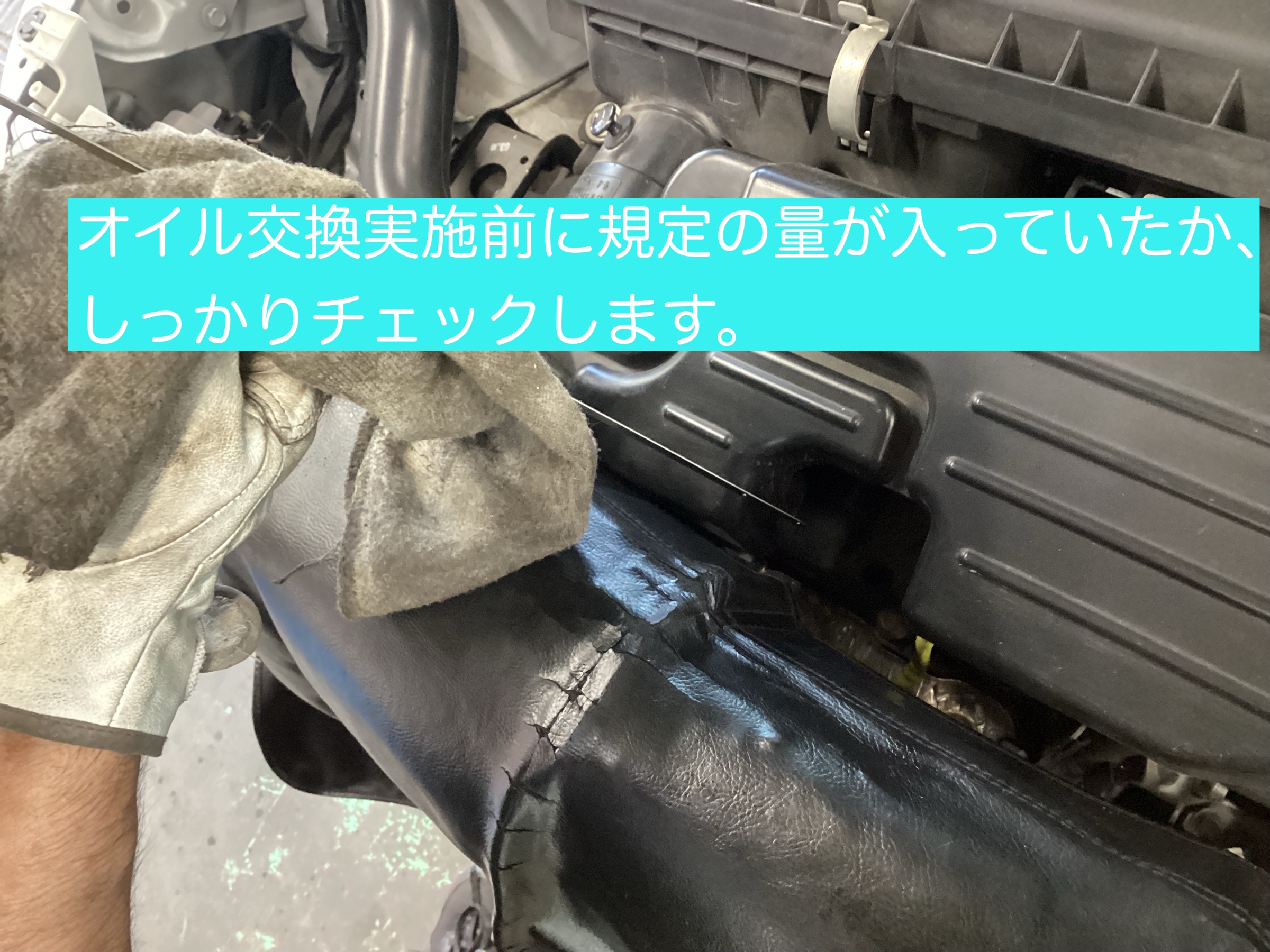 オイル交換する前に規定の量が入っていたかチェックしてから交換実施致します。
