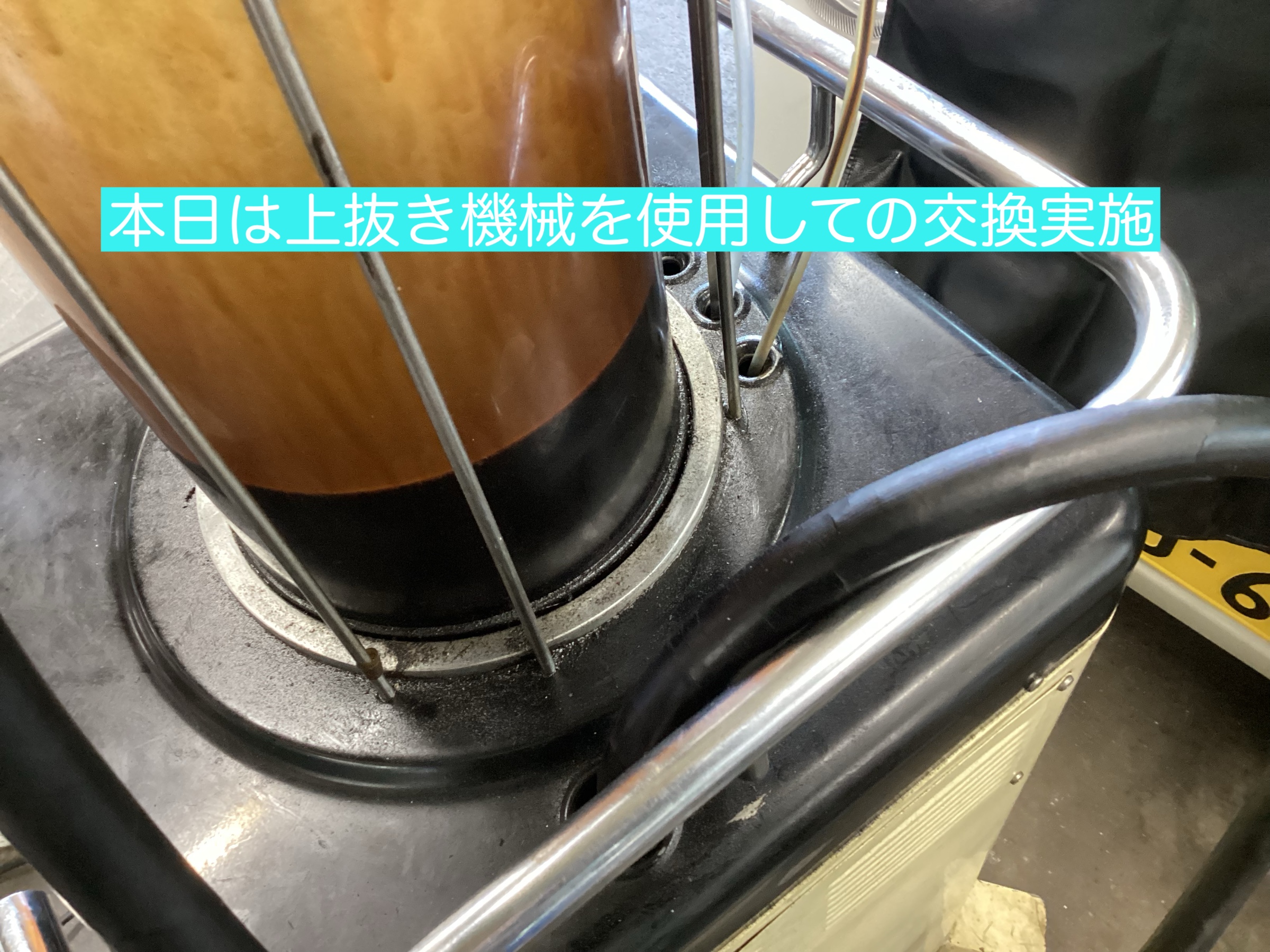 上抜き機械使用する場合と下のドレーンボルトから抜く方法が有ります。