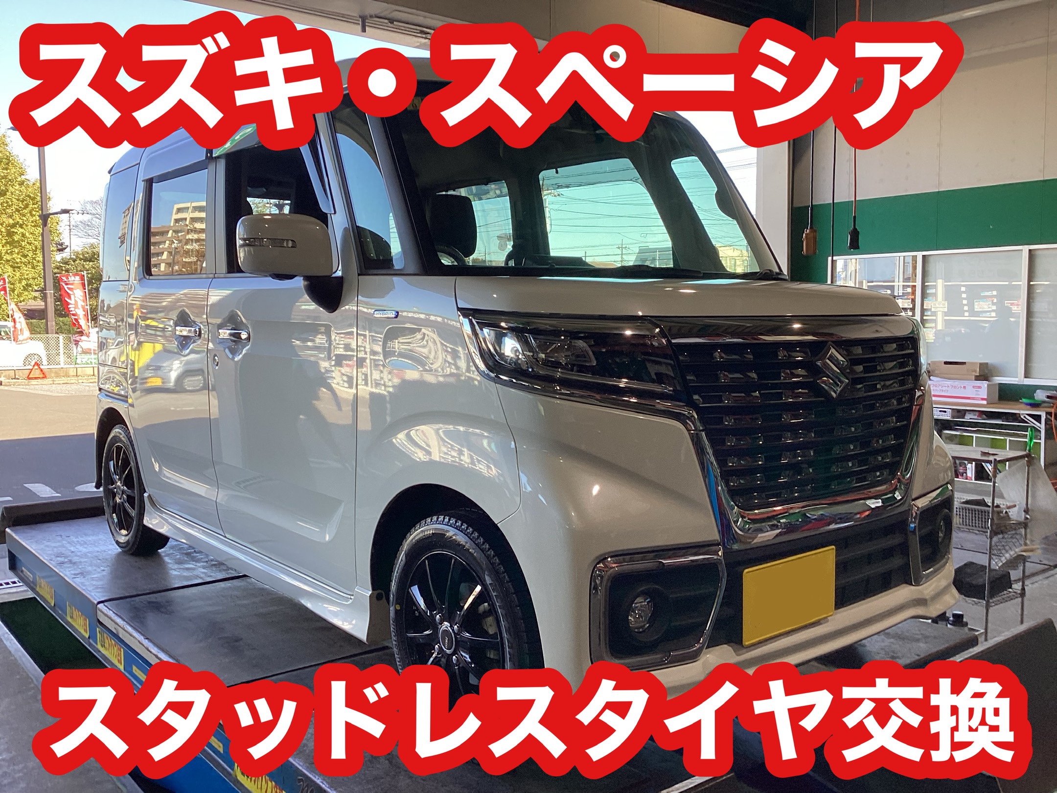 スズキ・スペーシアのスタッドレスタイヤ交換をご紹介いたします!