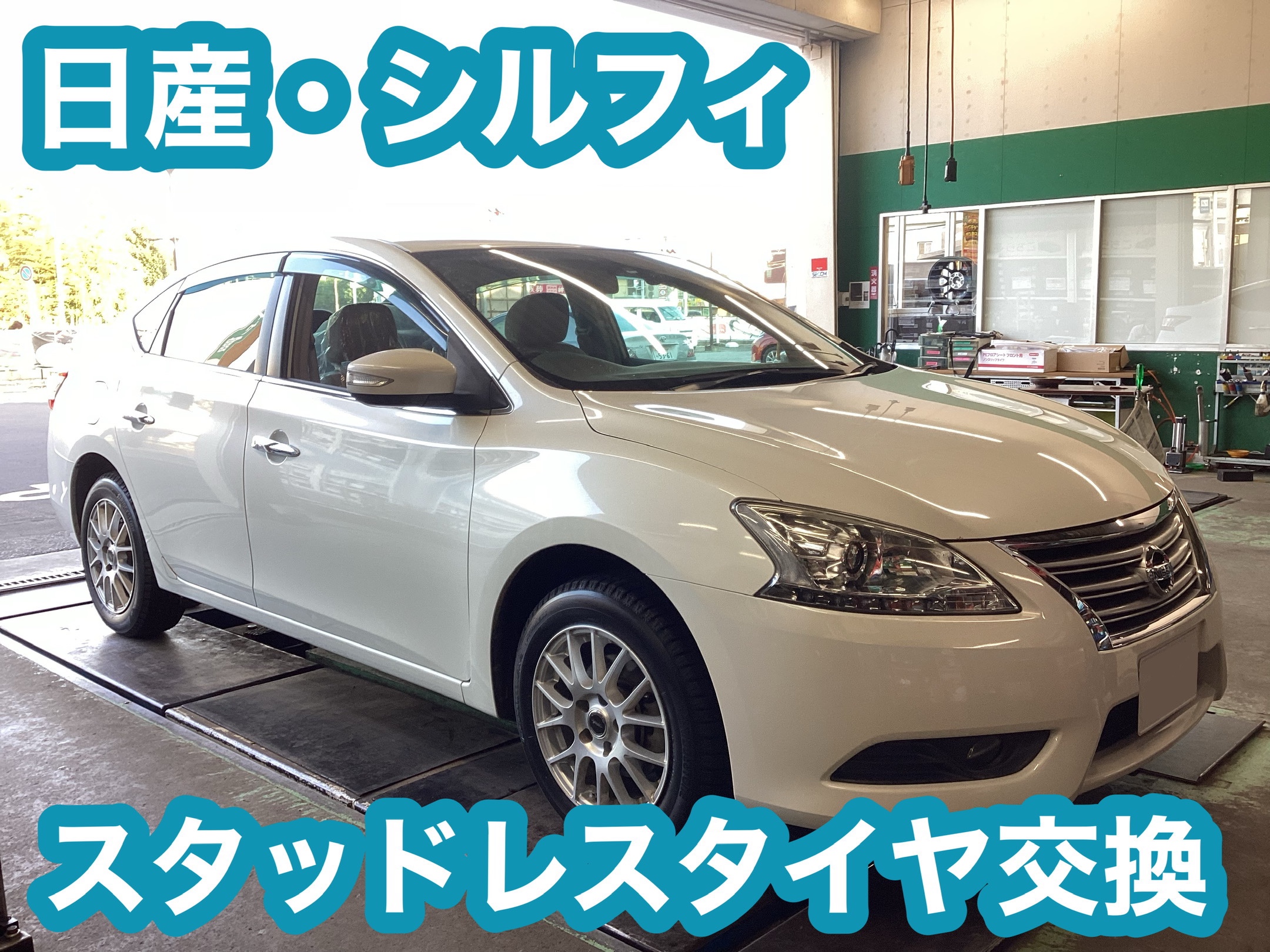 日産・シルフィのスタッドレスタイヤ交換をご紹介いたします!